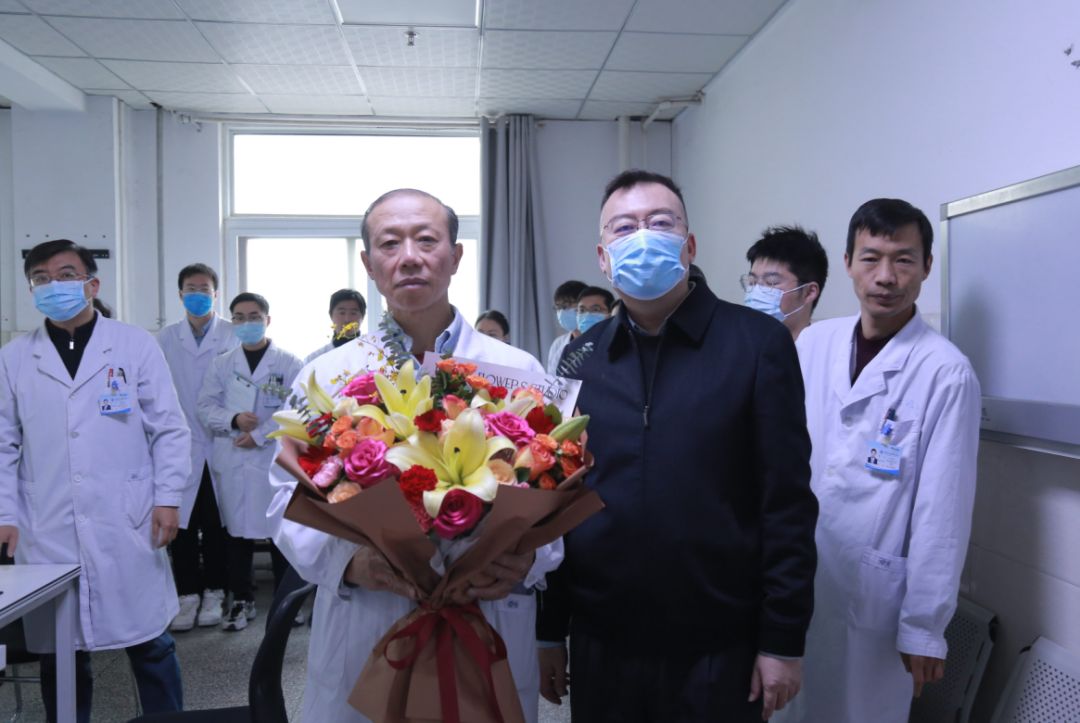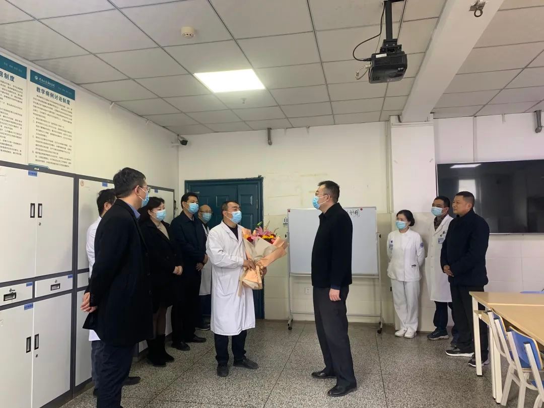 院领导将饱含祝福的鲜花送到援疆专家手中,欢迎他们回家,并致以崇高的敬意和真挚的问候。张东强代表医院感谢专家们出色完成了医院党委的援疆重托,援疆期间真情付出,耕耘不辍,不负重托,全身心投入到援疆医疗工作中,用实际行动践行了无私奉献的医者大爱,也为维护新疆民族团结作出了贡献。