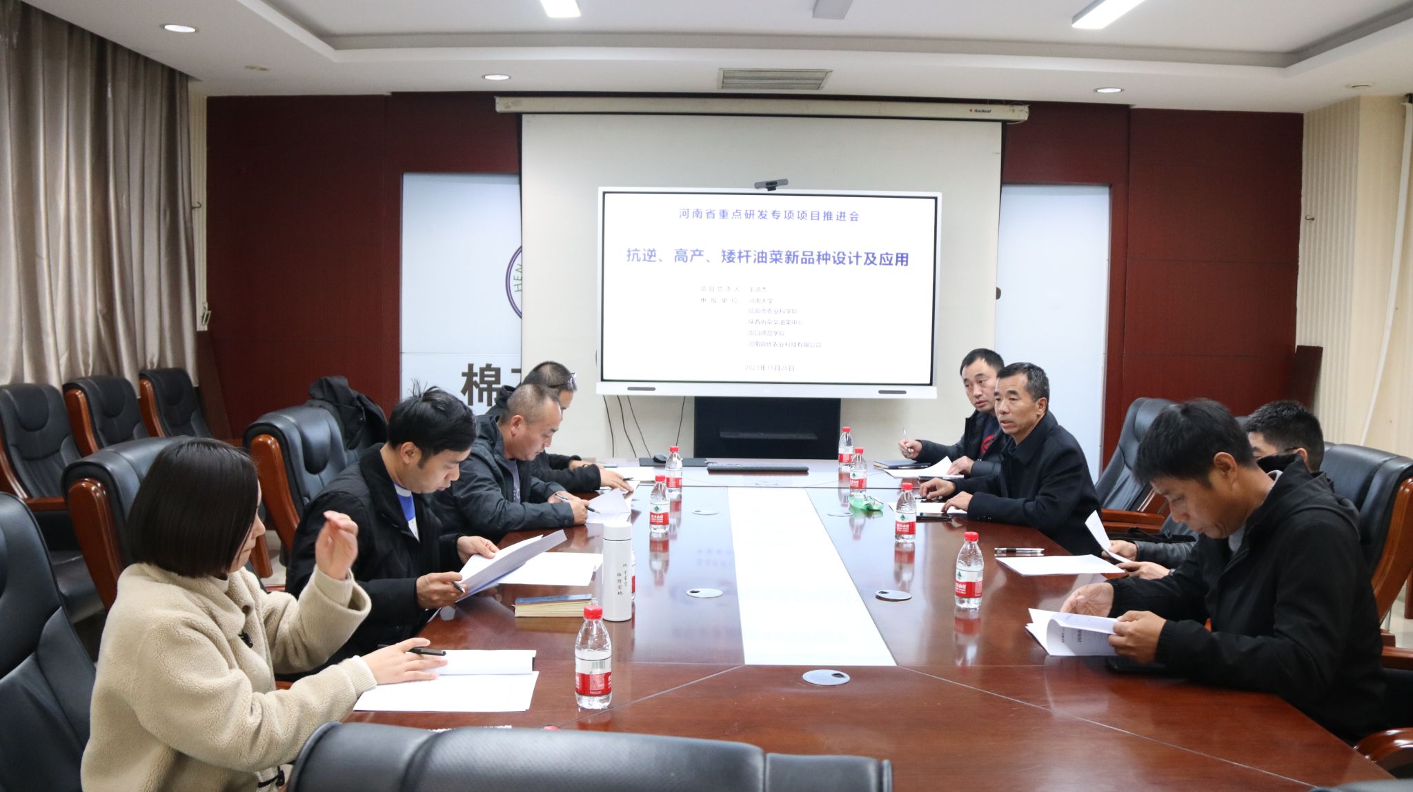 为深化项目课题间合作,保障项目地有序推进和顺利实施,11月29日下午,河南省重点研发专项“抗逆、高产、矮杆油菜新品种设计及应用”(221111110200)项目推进会在棉花生物育种与综合利用全国重点实验室202会议室召开。来自项目组成单位河南大学、陕西省杂交油菜研究中心、信阳市农业科学院、周口师范学院、河南鼎优农业科技有限公司成员代表等10余人参加了会议。