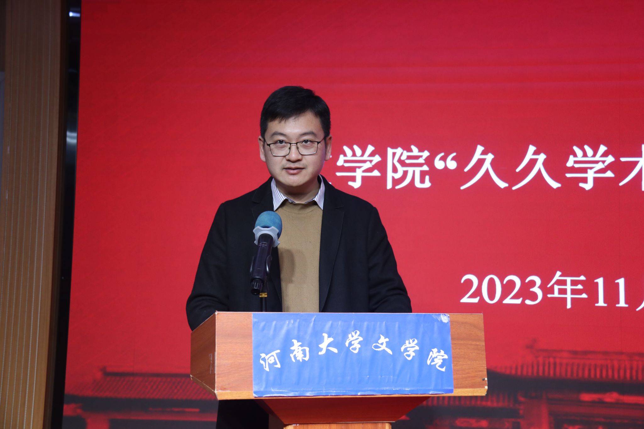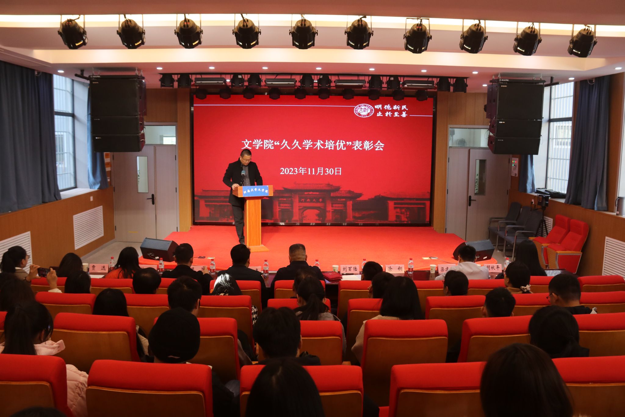 “落其实者思其树,饮其流者怀其源。”11月30日下午,“久久学术培优”表彰会在文学院二楼报告厅举行。河南大学教育发展基金会秘书长刘会军,河南大学人文社科高等研究院副院长陈会亮,文学院九九级校友,院党委书记刘百陆、副院长裴萱,本科生辅导员,“久久学术培优”获奖学生及各年级学生代表参加本次表彰会。表彰会由院党委副书记涂钢主持。
