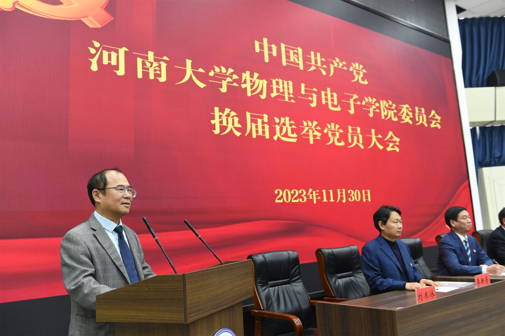 11月30日下午,中国共产党河南大学物理与电子学院委员会换届选举党员大会在金明校区锥形报告厅举行。学院全体党员参加会议,民主党派和无党派代表、高层次人才代表、退休教师代表和学生代表等列席会议。会议由学院党委副书记刘寒冰主持。