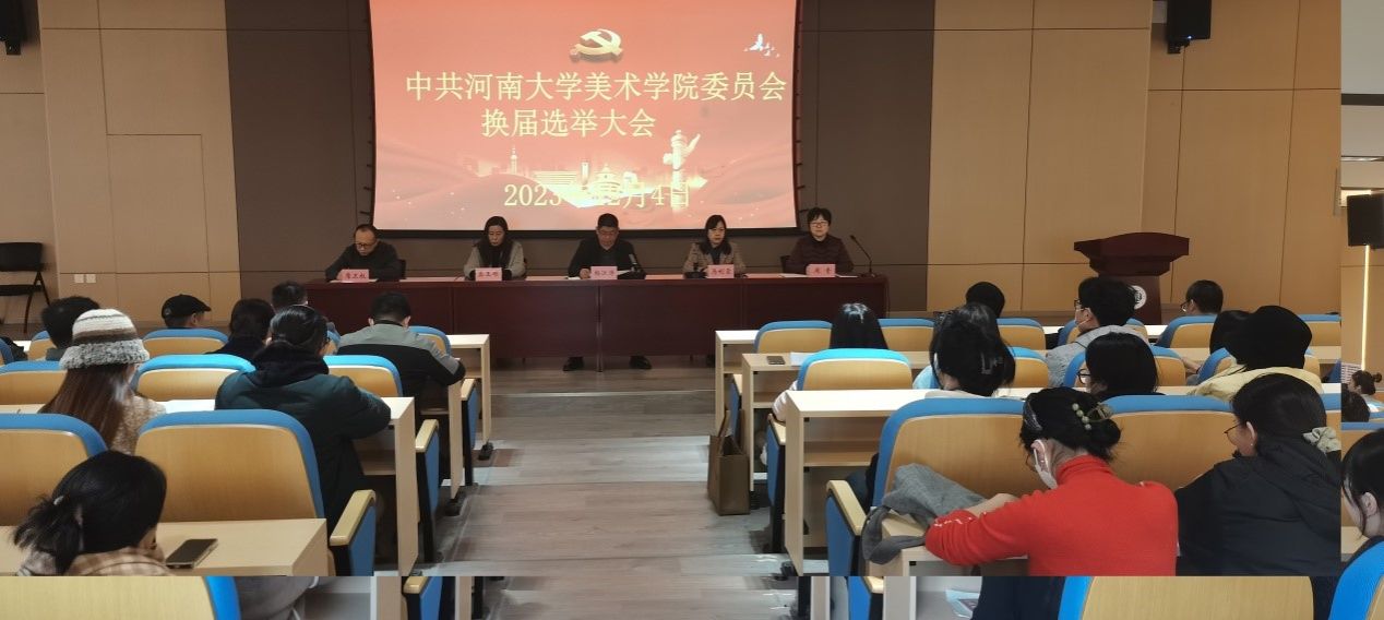 副院长马利霞代表上一届党委会作党费收缴使用情况报告。副院长李龙国宣读《中共河南大学美术学院委员会换届选举办法》。校样板党支部、美术学院教工第三党支部书记刘阳对九名候选人的基本情况逐一进行介绍。现场通过监票人、计票人提名人选,依照程序进行无记名投票。