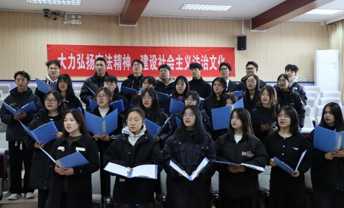 “求学受教,守土护疆,宪法为我们护航……”朗读过后,一曲《宪法伴我们成长》在会议室奏响,普法志愿者们热情洋溢、歌声嘹亮,一段段轻快明朗的旋律在同学们耳边回响,一句句朝气蓬勃的歌词在同学们心中回荡,唱出了新时代青年对宪法崇高的信仰,奏响了建设社会主义法治国家的时代强音。