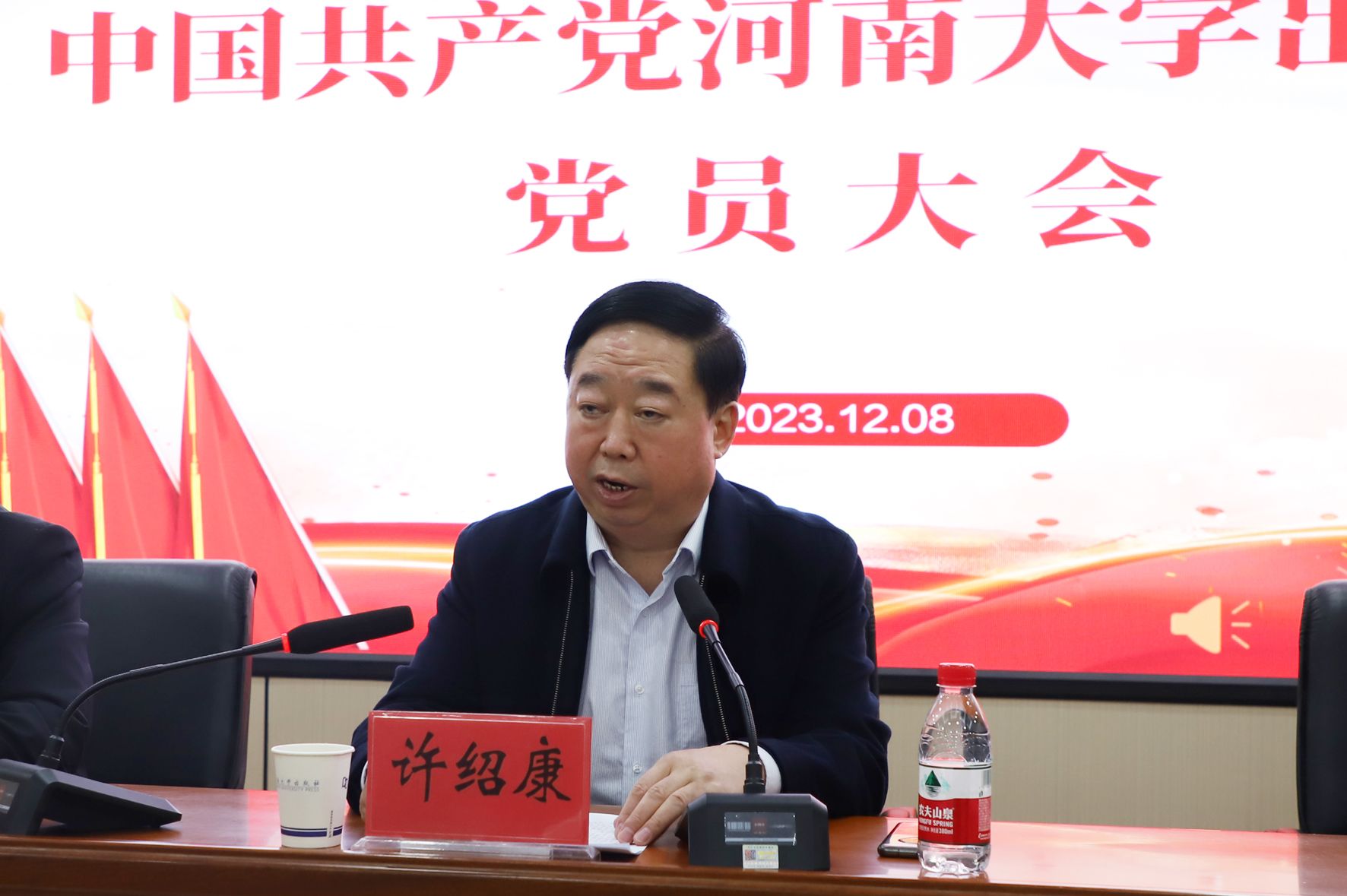首先,王玉珍代表学校党委宣读了《关于调整出版社党组织设置的通知》,经校党委常委会会议研究,决定将出版社党总支调整为出版社党委。许绍康代表校党委对出版社党总支调整为党委表示祝贺,并对出版社全体党员职工的勤奋努力表达了诚挚的敬意。他指出,出版社能够始终发挥党建引领作用,探索实施“党建+业务”工作法,积极推动出版业务的稳定发展,能够把“党管出版、党管意识形态”的原则贯彻到意识形态工作的全过程、贯彻到出版业务的全流程,能够坚持党的建设与企业治理相互融合、相互促进,将党的领导融入到企业治理的各环节。近年来,出版社服务学校“双一流”建设和学科建设的能力不断提升,主题出版、学术出版和教育出版等精品内容出版的供给能力不断增强,社会效益和经济效益不断实现同步增长。他认为,将出版社党总支调整升格为党委,表明了学校对出版社发展的高度重视和殷切期望,标志着出版社党建工作和事业发展进入新阶段,踏上新征程,开启新篇章。为此,他对出版社新一届党委提出了三点殷切希望。一要凝聚思想共识,以政治建设为统领,扎实推进出版社党的各项建设。要始终坚持以习近平新时代中国特色社会主义思想为指导,深刻学习领悟习近平文化思想,切实增强推进出版事业发展的历史自信和文化自信。要多出书、出好书、出精品书,要胸怀“国之大者”,带着真情实感讲好中国故事、河南故事、河大故事。二要践行责任使命,以班子建设为抓手,切实增强党组织的凝聚力和战斗力。要全面落实“两个责任”和“一岗双责”,用实际行动践行责任担当。三要勇于开拓创新,以党建为引领,全面推动出版社高质量发展。要坚持党对出版工作的全面领导,牢牢把握意识形态工作领导权,守好意识形态阵地。要紧跟学校发展战略,全力支持推动学校“双一流”建设,构建“问题发现靠党建、问题发生查党建、问题解决看党建”的工作新格局。