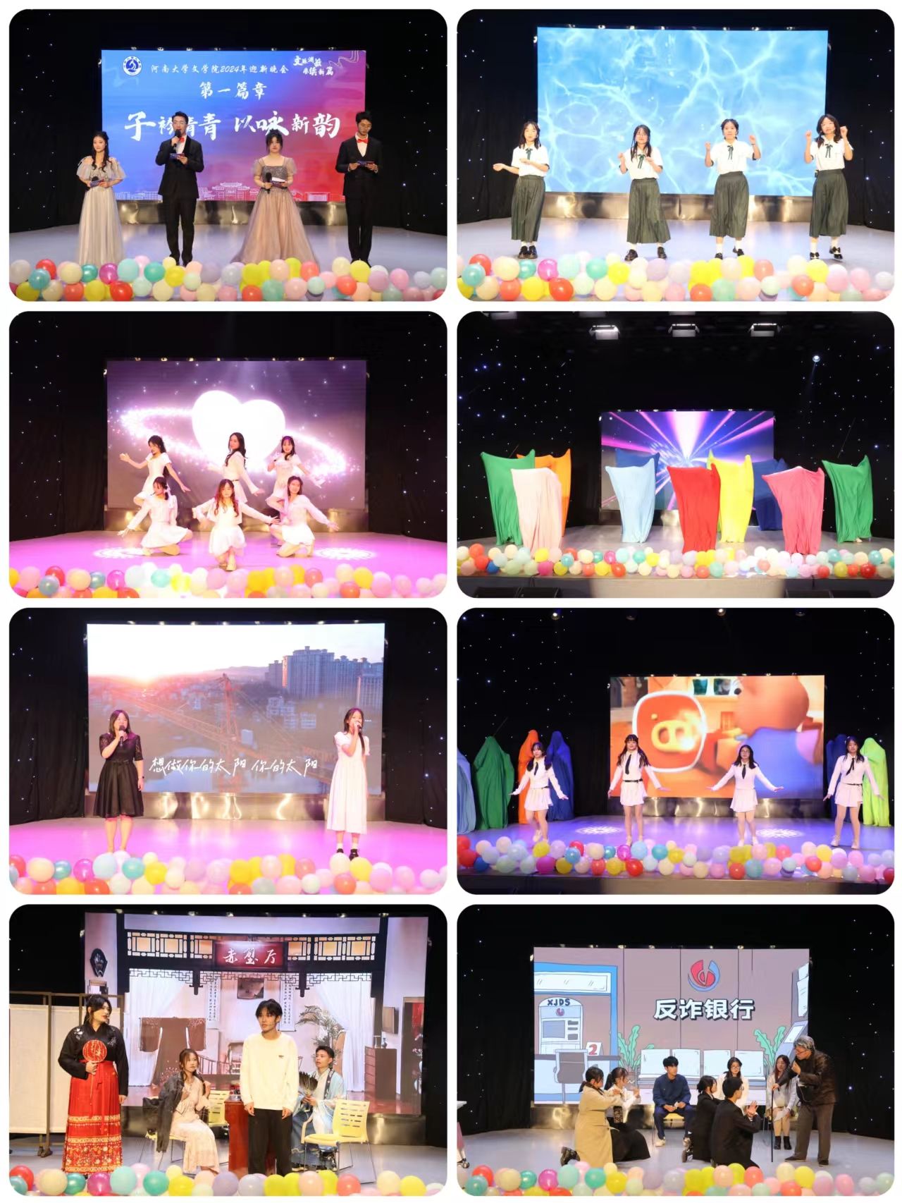 舞蹈《怦然“新”动》《悦舞青春》《off the record》活力满满,展现出文院学子的青春风采;合唱《太阳》《一笑倾城》《这世界那么多人》鼓舞大家勇敢向前,做自己的太阳发热发光;小品《军师恋盟》《反诈银行》《消失的周日》别出心裁,引来观众满堂笑声;古典舞《红马》以曼妙舞姿展现了古典舞的刚柔并济之美;舞台剧《红楼一梦,归彼大荒》再现了黛玉咳血病逝的情节,演绎了繁华落尽的凄凉之美;相声《我要当卷王》以“要当卷王”的名义,嘲弄当下无意义的内卷现象,发人深省。朗诵《沁园春•长沙》《共祈2024,此致河大,此致文院》朗诵直抒情意,向河南大学和文学院深情告白。