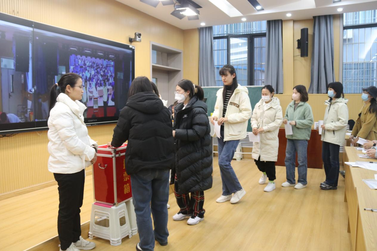 大会表决通过了委员会换届选举办法和监票人、计票人名单,依照程序进行了无记名投票差额选举。根据选举结果,刘百陆、武新军、涂钢、杨波、焦凡、庄鹏涛、裴萱等7位同志得票均超过半数,当选为文学院新一届党委委员。