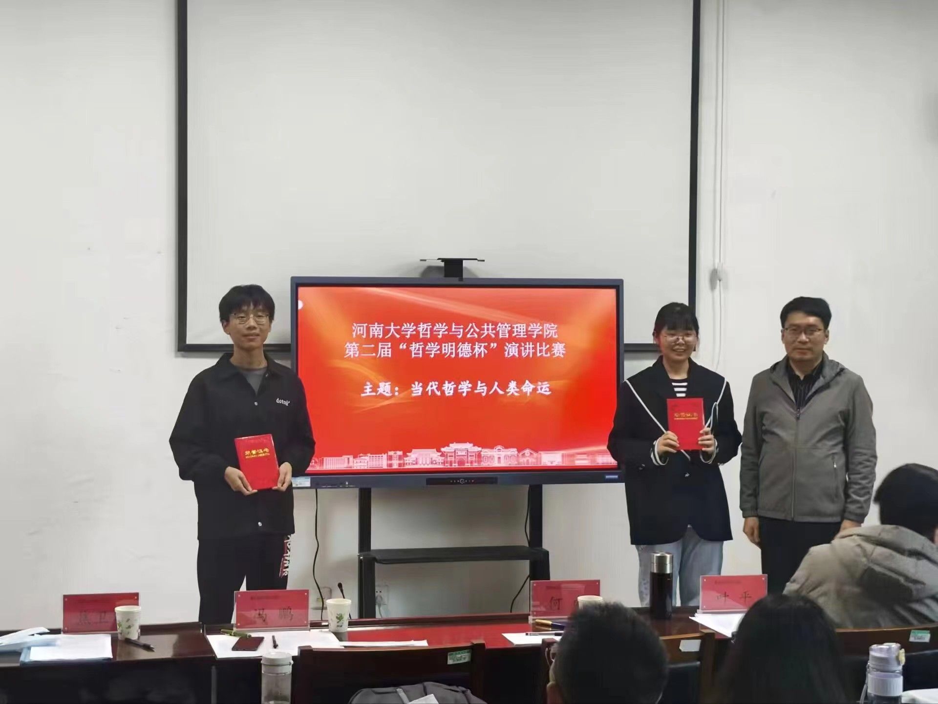 为纪念河南大学哲学系百年华诞,提高学生学科专业能力,12月7日下午,哲学与公共管理学院第二届“哲学明德杯”演讲比赛在学院MPA第三教室如期举行。学院党委副书记何威,哲学明德班负责人叶平教授、哲学专业教师代表焦卫华、冯鹏、孙少飞出席本次活动并担任比赛评委。
