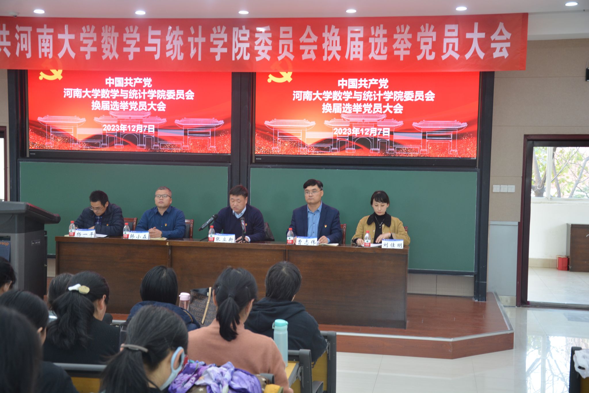 在会议的第二阶段,大会表决通过了《数学与统计学院党委换届选举办法》和监票人、计票人名单,宣布了新一届中共河南大学数学与统计学院委员会委员名额和候选人名单,并简要介绍了候选人基本情况。经过大会选举,王中华、刘佳明、杨一平、郑晨、曹志伟、韩小森、解俊山(以姓氏笔画为序)7位同志当选为中共河南大学数学与统计学院委员会新一届委员。