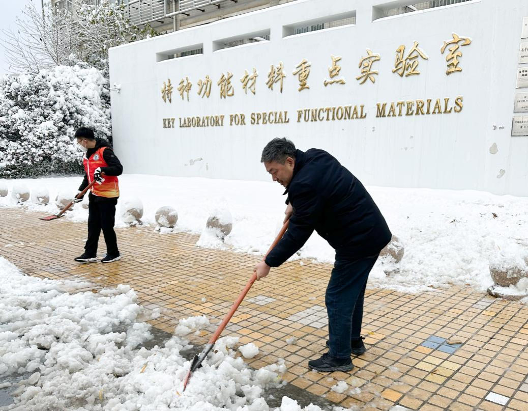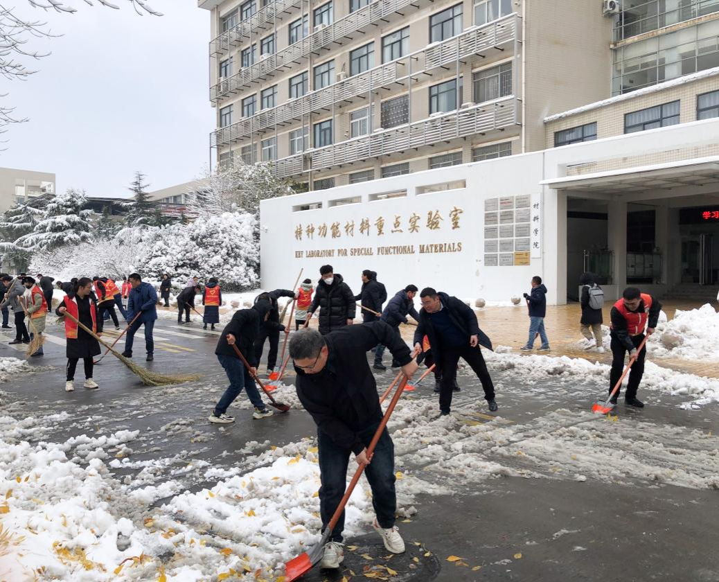 一场瑞雪如期而至,将校园装点得银装素裹,美不胜收。然而,积雪也给师生的工作和学习带来了安全隐患。为营造安全校园,保障师生出行便利,12月11日上午,材料学院组织全体教职工开展清扫校园积雪活动。
