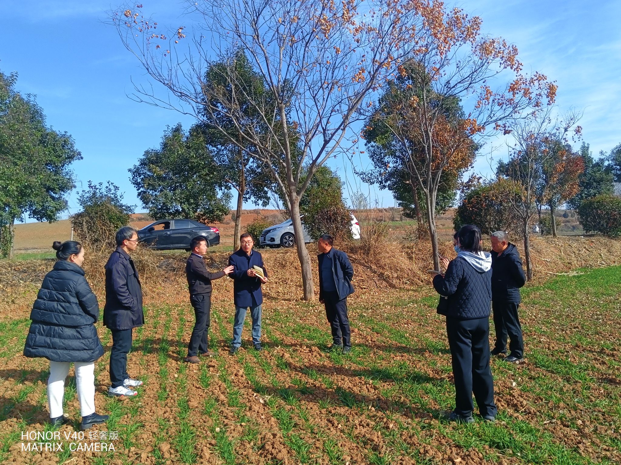 高安礼一行深入到嵩县大坪乡宋岭村、闫庄镇店上村和瑶湾村,与乡村干部和种植户进行交流,并走进麦田进行现场指导。村委会负责人介绍了相关村庄的基本情况和种植业结构,并就作物种植过程中遇到的实际问题向专家们进行了咨询。专家服务队详细了解了嵩县的农业产业发展现状,对种植户遇到的问题进行耐心解答,建议农民朋友选择种植高产、优质、广适应性的农作物品种,生命科学学院将在新品种推广和种植方面提供技术服务。目前正值小麦越冬期,专家服务队深入小麦田间,查看小麦的生长情况和苗期病害的发生情况,对小麦越冬前的栽培管理措施及病害防治提供指导建议。