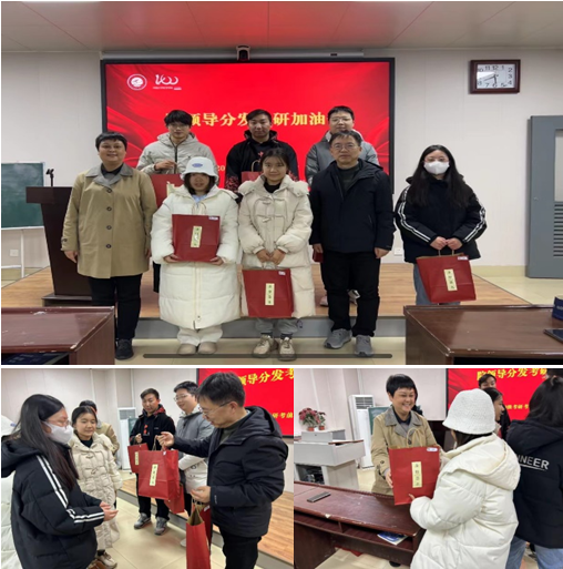 最后,院领导为大家暖心送上年级精心准备的考研加油包。考研加油包中的物品处处体现着“用心”和“暖心”,金榜题名的手提袋中诚意满满,好运多多。2020级辅导员郭佳老师为每位考研学子都送上了手写的祝福卡片,加油包中满满维C的橙子寓意一战“橙”硕,红彤彤的大苹果寓意“苹”稳上岸,满满能量的士力架寓意“巧克”难题,各种口味的薯愿薯片寓意得偿所“愿”,最后还有一瓶旺仔牛仔寓意“考场上最旺的仔”。除了好运食品,年级还为大家准备了特别定制的“一定上岸”马克杯,以及暖贴和口罩。