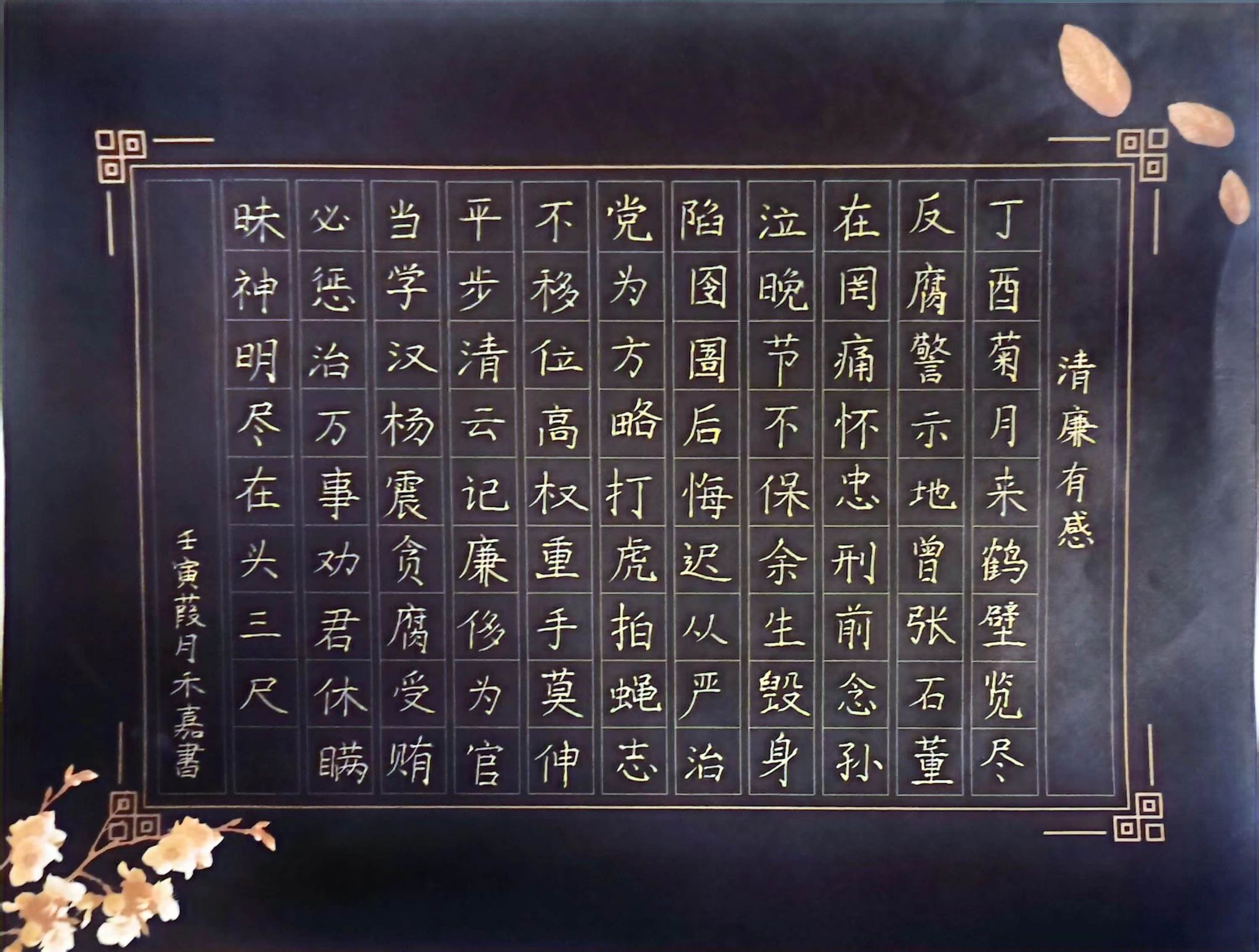 11月23日—12月1日,明德廉风学社举办“清风扬正气,廉韵启新程”主题作品创作比赛。活动得到了河大学子的热烈响应,同学们纷纷拿起画笔、书法等创作工具,以饱满的热情和独特的视角,创作出了一批风格多样、高雅清美的廉政主题书画作品,为河大校园增添了一道亮丽的“廉政风景”。