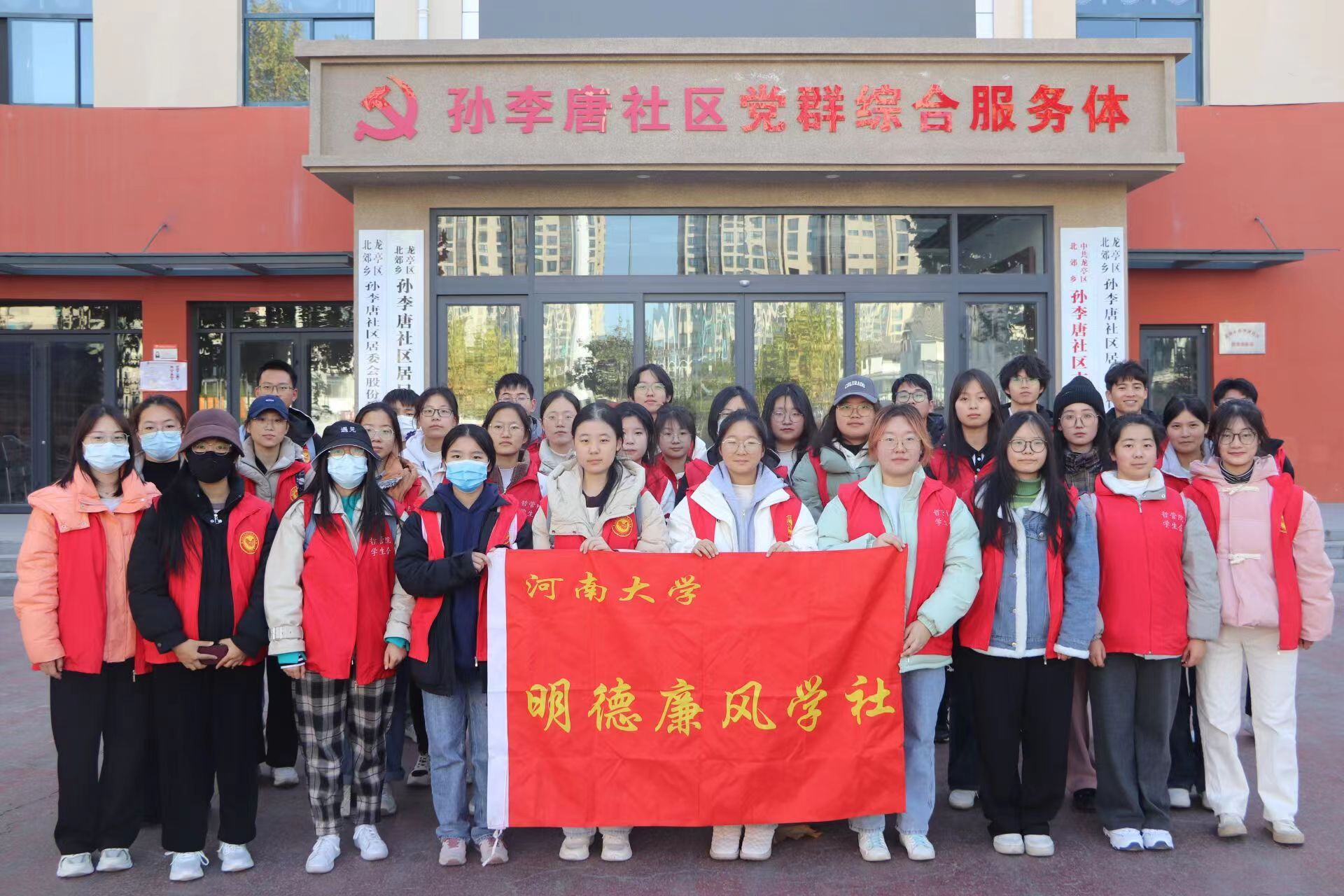 11月25日—12月7日,河南大学明德廉风学社围绕“弘扬廉洁文化,涵养时代新风,争做廉洁先行者”作廉洁主题宣讲。社团骨干成员通过开展进社区、进支部、进班会、进学生会等“四进”宣讲活动,大力传播廉政理念,营造校园廉政文化氛围。