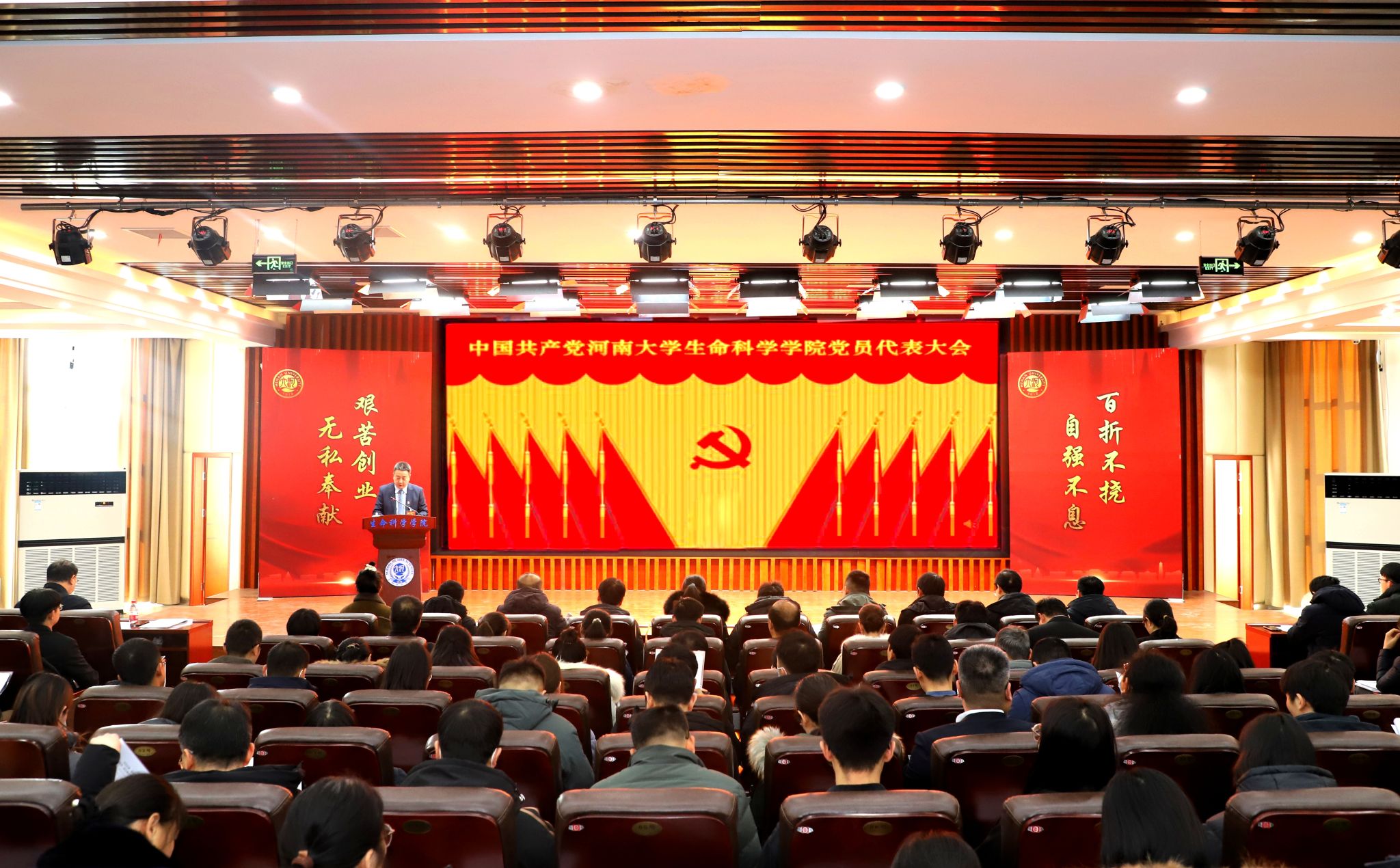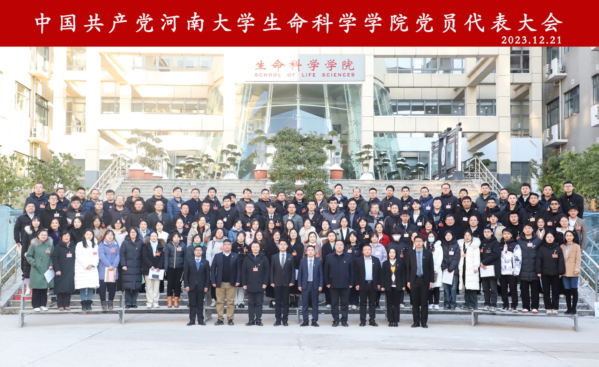 12月21日下午,中国共产党河南大学生命科学学院党员代表大会在学院圆楼报告厅召开。生命科学学院、棉花生物育种与综合利用全国重点实验室、省部共建作物逆境适应与改良国家重点实验室134名师生党员出席大会,民主党派和无党派人士代表、高层次人才代表、学生代表等16人列席会议。大会由学院党委副书记宋永鹏主持。