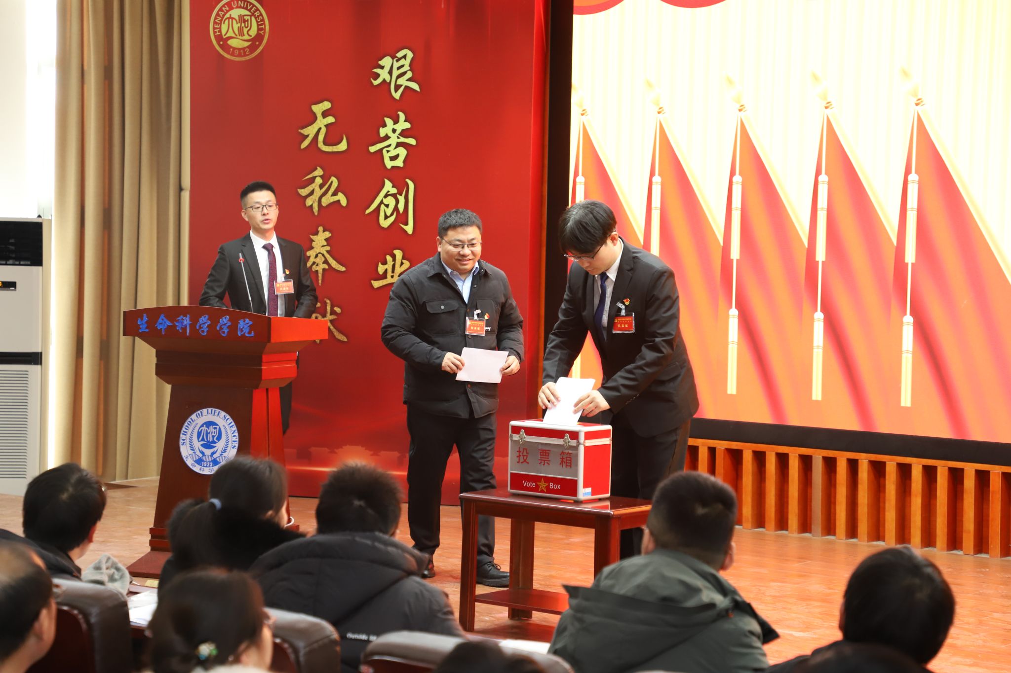 大会审议通过了刘文成、时玉、张要军三位同志为监票人。大会以无记名投票方式差额选举产生新一届中国共产党河南大学生命科学学院委员会委员(以姓氏笔画为序):王刚、苏鹏、李志芳、李国勇、吴建伟、宋永鹏、赵昕鹏、赵海鹏、彭李超。