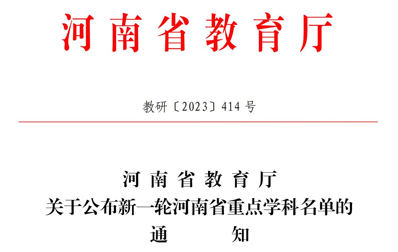 近日,河南省教育厅发布了《河南省教育厅关于公布新一轮河南省重点学科名单的通知》(教研〔2023〕414号),经学校申报、专家网评、专家会评、网上公示等环节,立项建设472个省重点学科。数学与统计学院申报的数学与统计学均获批为新一轮河南省重点学科,重点学科建设期为2023—2027年。