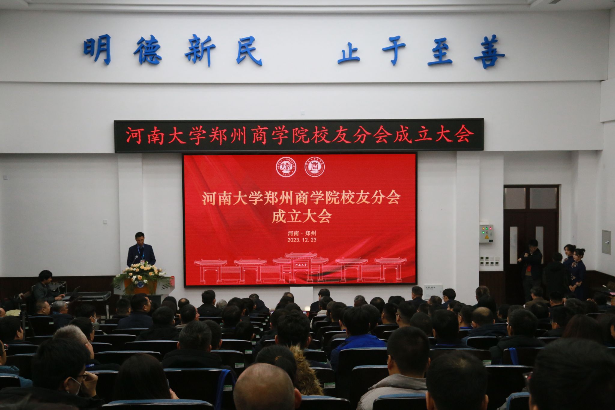 12月23日,河南大学郑州商学院校友分会在郑州校区友兰学堂正式成立。河南大学党委常委、副校长、河南大学校友总会副会长许绍康,财经系原党总支书记、河南农业大学原党委书记程传兴,中共河南省委咨询组研究员、河南省社会科学院原院长、河南大学郑州校友会会长张占仓,财经系原团总支书记、郑州电子商务职业学院党委书记王友成,工商管理学院原副院长、河南机电职业学院副校长王发清,河南大学校友总会秘书长刘会军,商学院党委书记左辞波,商学院原院长王性玉,法学院党委书记祝晓路,招生办公室主任樊小勇以及学院教师代表、各地校友会代表、各届校友代表出席了成立大会。大会由商学院执行院长席龙胜主持。