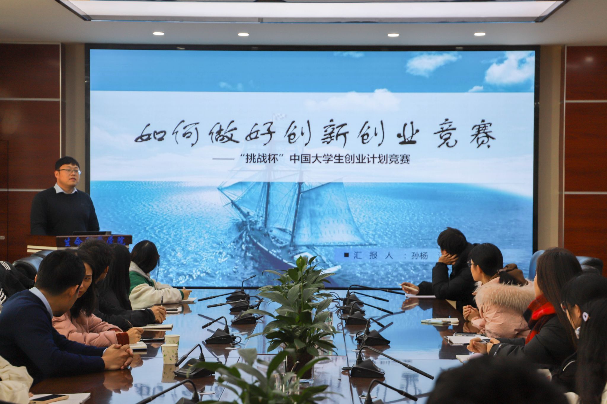 孙杨介绍了“大挑”“小挑”区别以及参赛要求,使同学们更加深刻地认识“挑战杯”赛事。他结合自身经验从“以终为始”“团队为先”“好项目的生命周期”“求真务实”四个方面详细地向同学们进行赛前指导,包括商业计划书的书写、PPT的制作、团队的分工、路演的练习等等,并结合获奖队伍实例,分析其成功的可取之处以及存在的不足,鼓励同学们以更严格的标准要求自己,向更高的目标努力,臻于至善。最后,孙杨老师向同学们分享自己的心得体会,一是备赛期间要明确项目方向;二是注重团队合作,共同认真打磨项目;三是答辩环节力求共鸣,为在场的同学们提供了宝贵的建议。