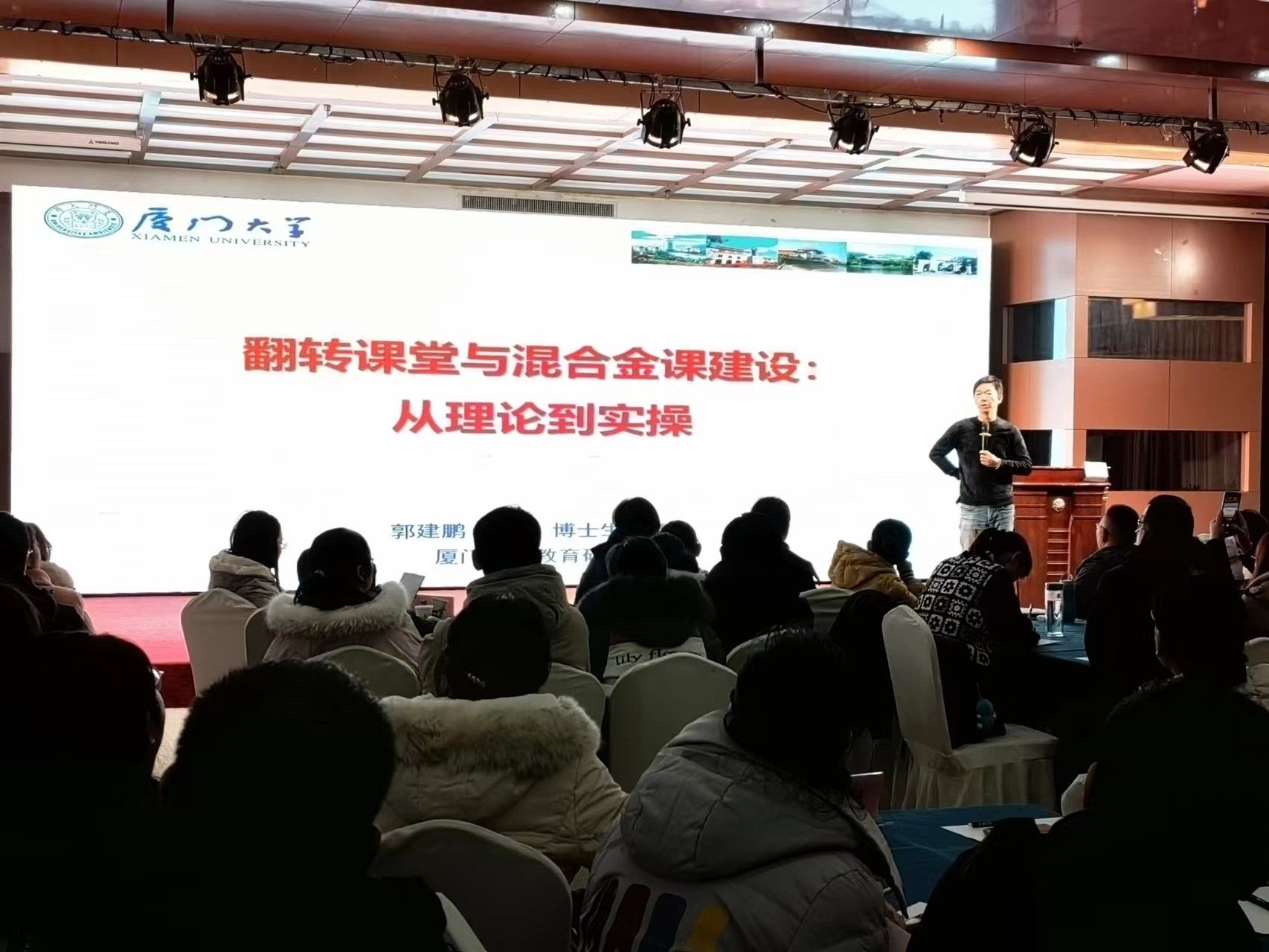 为进一步提升医学院教师混合式教学的理论及实操水平,12月24日,河南大学医学院第二届师资培训会暨数字化转型赋能一流本科课程建设专题研讨会第四期在郑州亚菲亚国际酒店会议室举办。培训会邀请了厦门大学教育研究院副院长郭建鹏教授,医学院教学工作组组长、基础医学院副院长柴立辉教授作“翻转课堂与混合式教学”的专题培训。来自医学院所属各单位的90余名教师参加培训。会议由柴立辉主持。