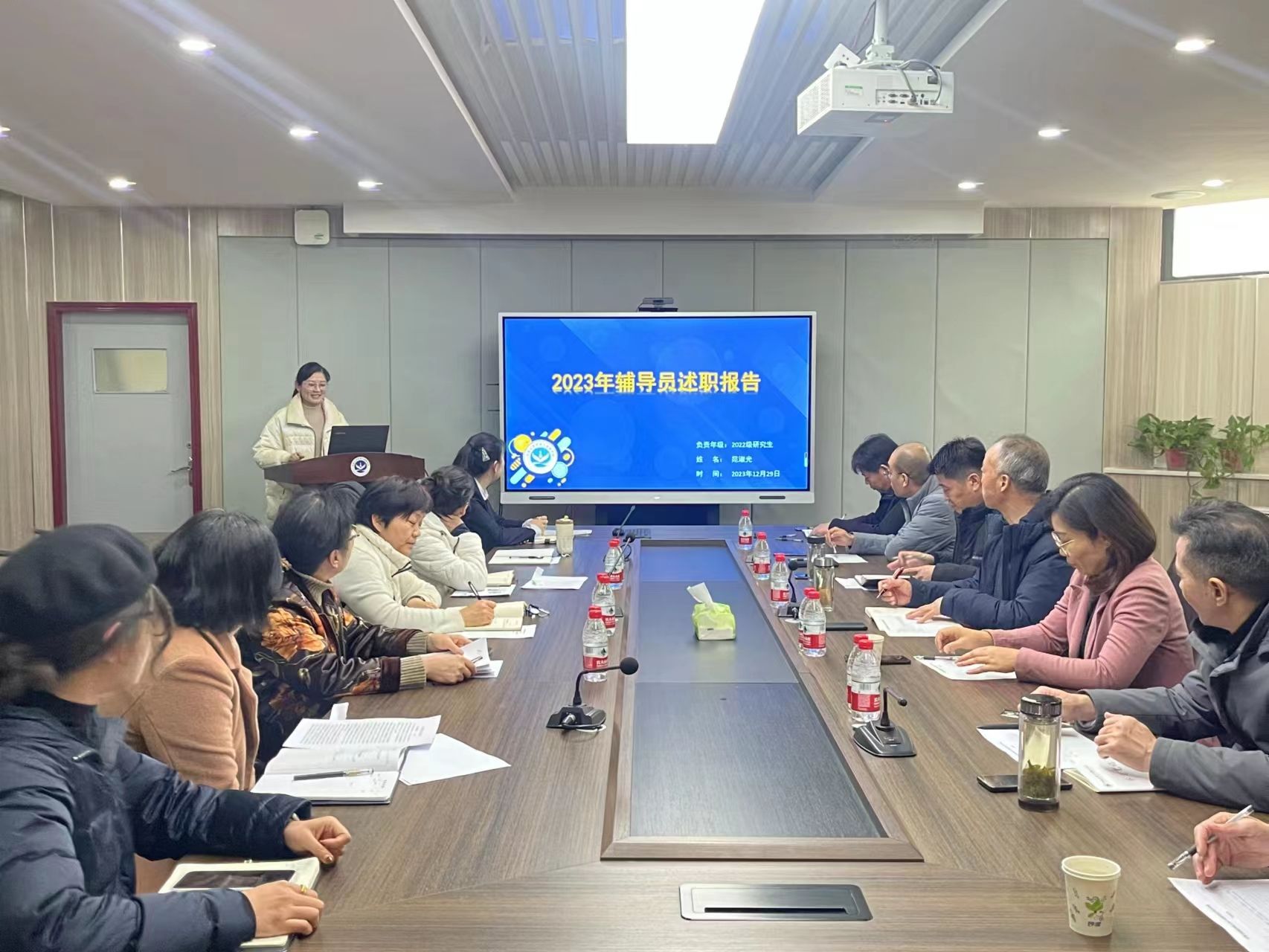 述职会上,各位辅导员依次结合自身工作实际,从思想政治教育、党团和班级建设、学风建设、日常管理、心理健康、就业创业指导等方面,对这一年来的工作进行述职汇报,通过详实的事例、数据和图片生动展现了工作亮点和成效,分享了个人感悟和收获,梳理了存在的不足,明确了努力方向,充分展示了学院辅导员队伍的良好风貌和责任担当。