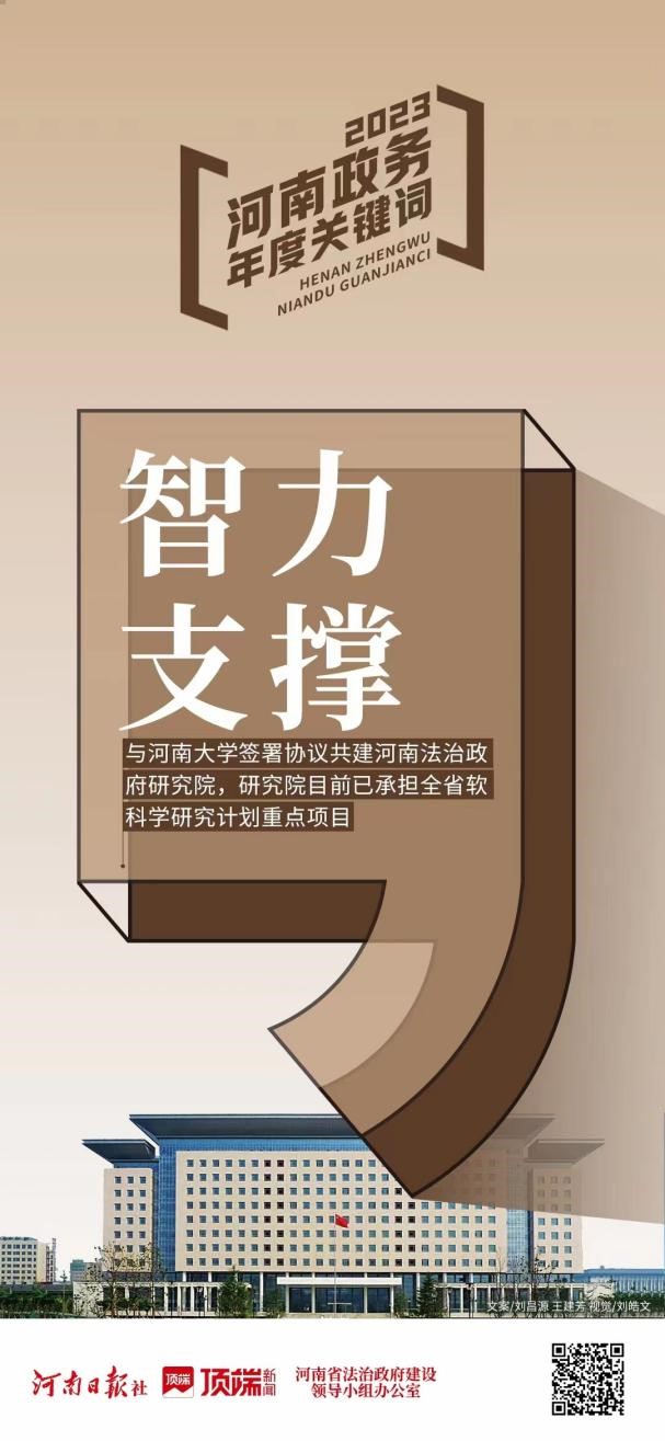 近日,河南日报社顶端新闻时政频道特别推出“河南政务年度关键词”系列策划,我校与省法治政府建设领导小组办公室、省司法厅共建河南法治政府研究院入选“2023年河南法治政府建设年度关键词——智力支撑”。其他入选关键词是“高位引领”“创建示范”“府院联动”“服务型执法”“督导考核”。