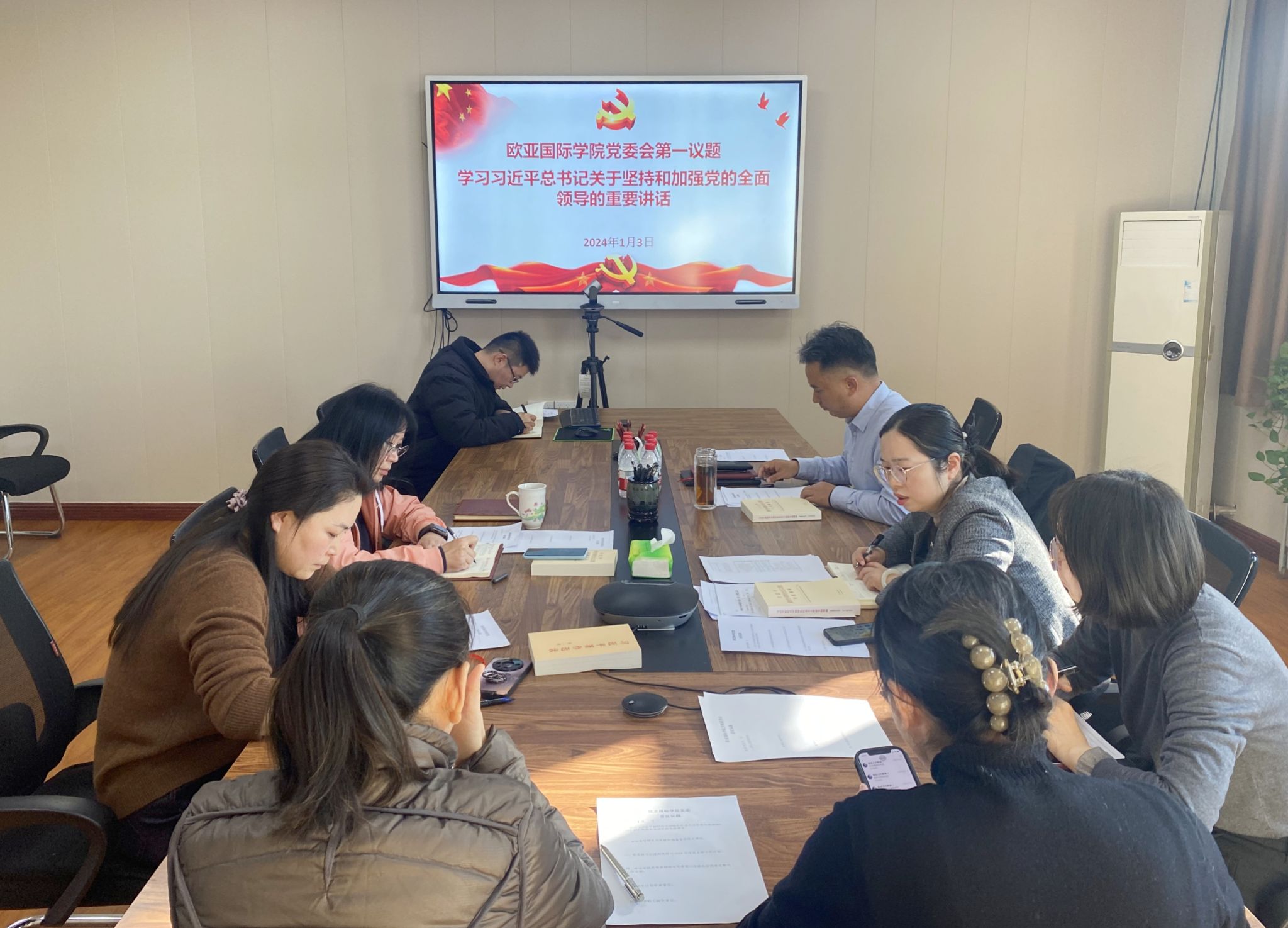 1月3日上午,欧亚国际学院在学院205会议室召开党委(扩大)会议,专题研究部署巡察整改工作。学院全体班子成员、党委委员、各部门负责同志和基层党支部书记参加会议。会议由学院党委书记王振存主持。