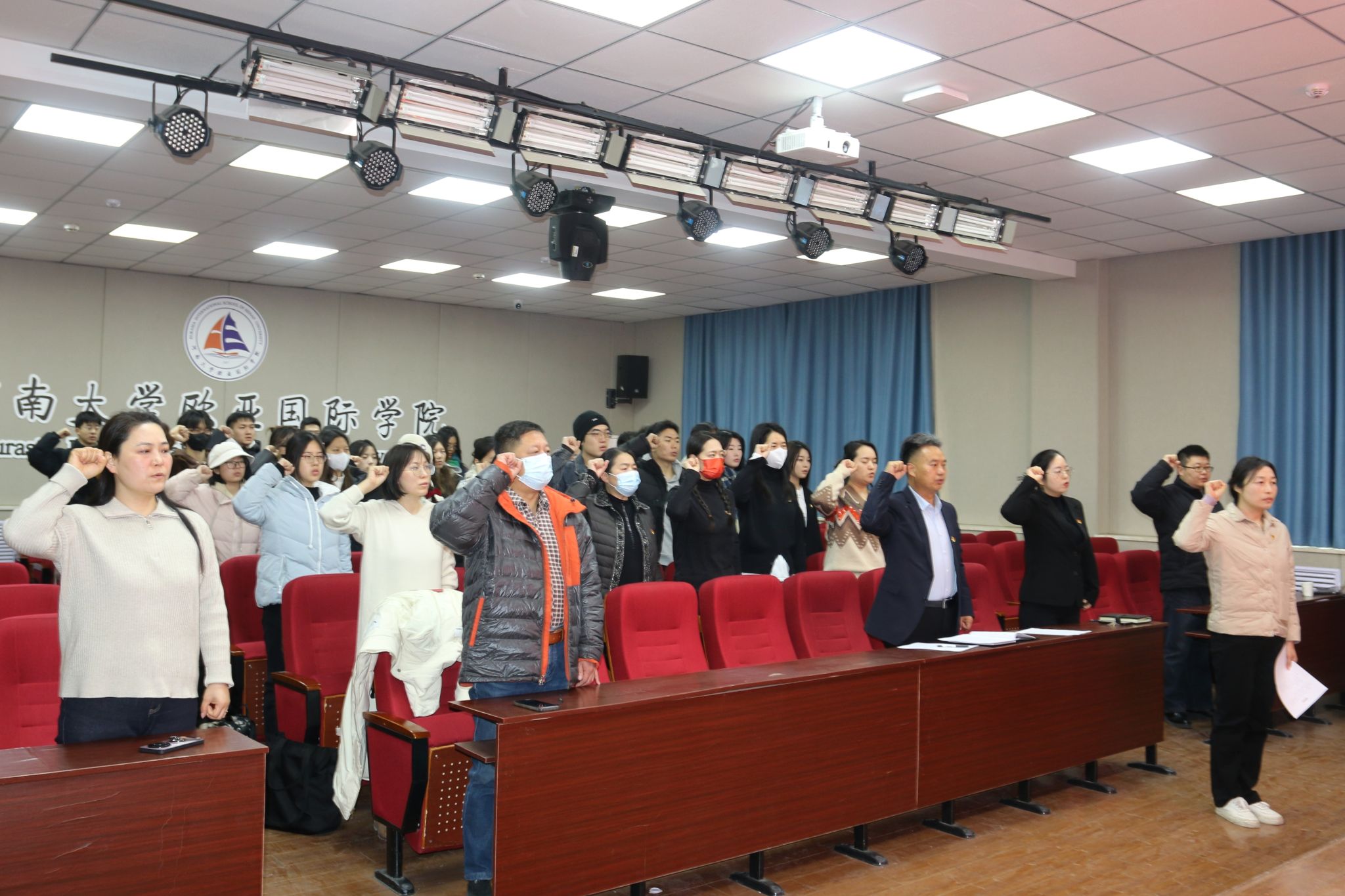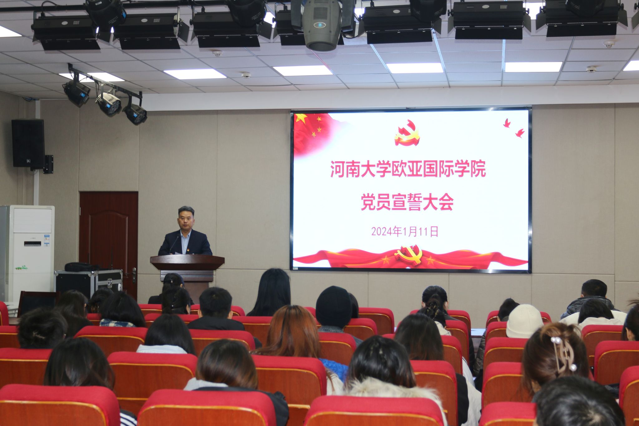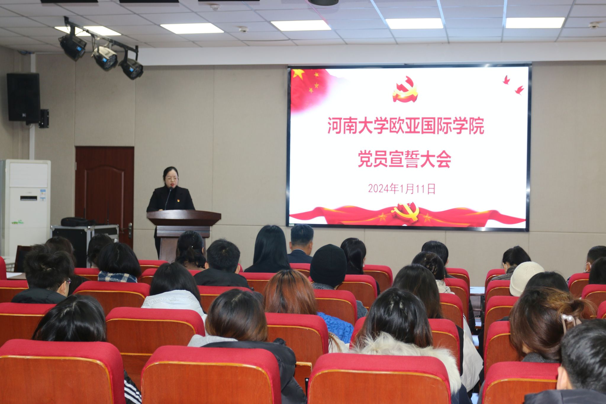 1月11日上午,欧亚国际学院在学院二楼报告厅举行党员宣誓大会。学院全体党员参加了会议。大会由学院党委副书记贺颖主持。