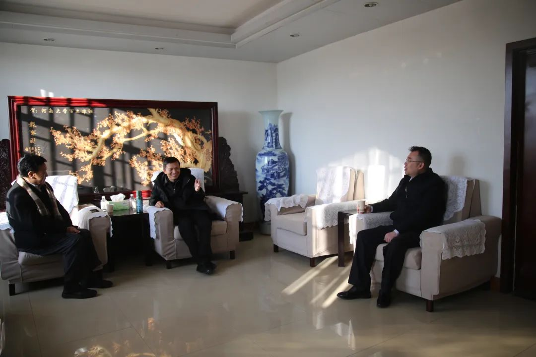 在金明校区,校党委副书记季波与欧珠罗布畅谈交流,回忆过往,共叙情谊,共谋发展。