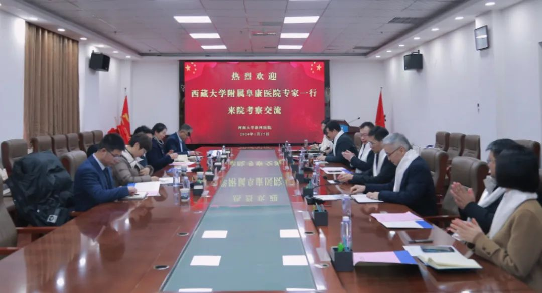 1月15日下午,欧珠罗布及西藏大学附属阜康医院相关科室负责人一行5人到医院考察交流,院党委书记张东强及在院领导班子成员、医院相关职能科室负责人参加座谈会并陪同考察交流。会议由院党委副书记付传恒主持。