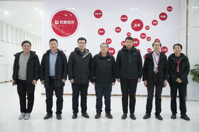 在优路教育集团的走访中,程金辉一行与优路教育集团董事长石泰和总经理夏大庆进行了深入交流。双方就学生实习就业,合作平台建设,在职教育资源拓展等方面进行了深入探讨。双方均表示要以深化产教融合为抓手,不断增强高校人才供给与企业发展需求的匹配度,不断增强人才培养的针对性和适应性,促进学生高质量就业,培养和输送更多的优秀人才。会后,程金辉一行参观了优路教育集团的平台实验室和直播间等。