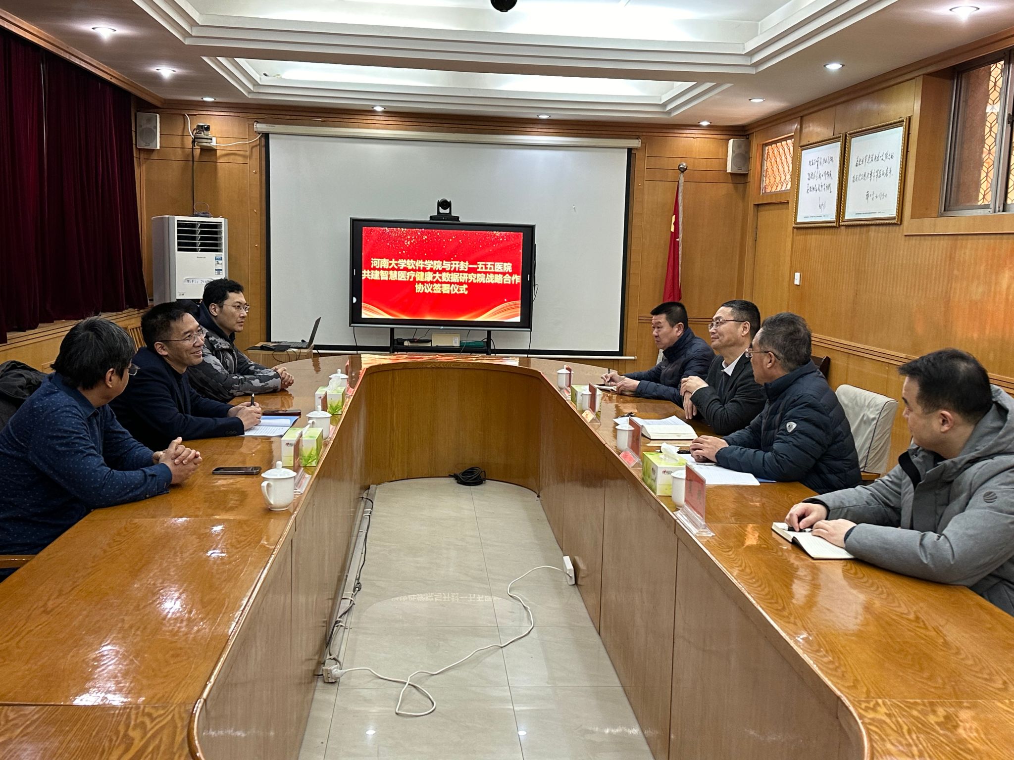 为了加强与开封一五五医院在智慧医疗和健康大数据领域深度合作,共同推进医疗卫生领域技术创新与产业发展,1月22日上午,软件学院与开封一五五医院共建智慧医疗健康大数据研究院合作协议签约仪式在开封一五五医院举行。开封一五五医院院长郭长升、党委书记侯俊清、副院长石磊、信息科主任夏超,软件学院院长何欣、副院长左方出席此次签约仪式。