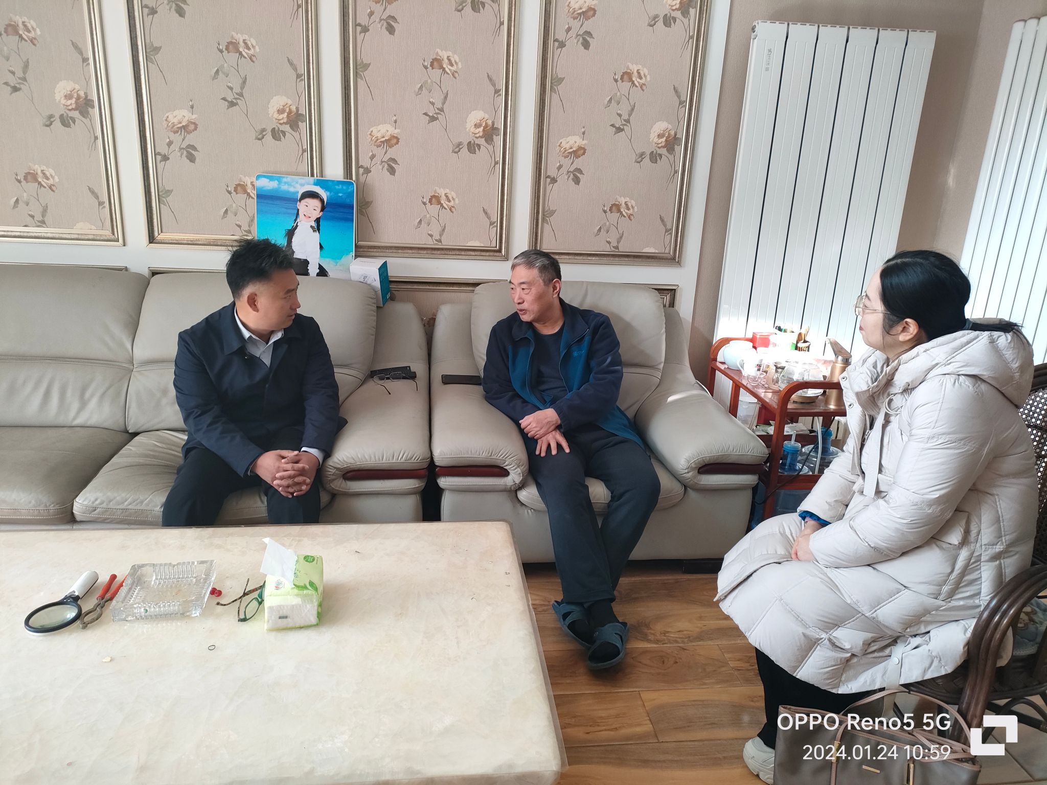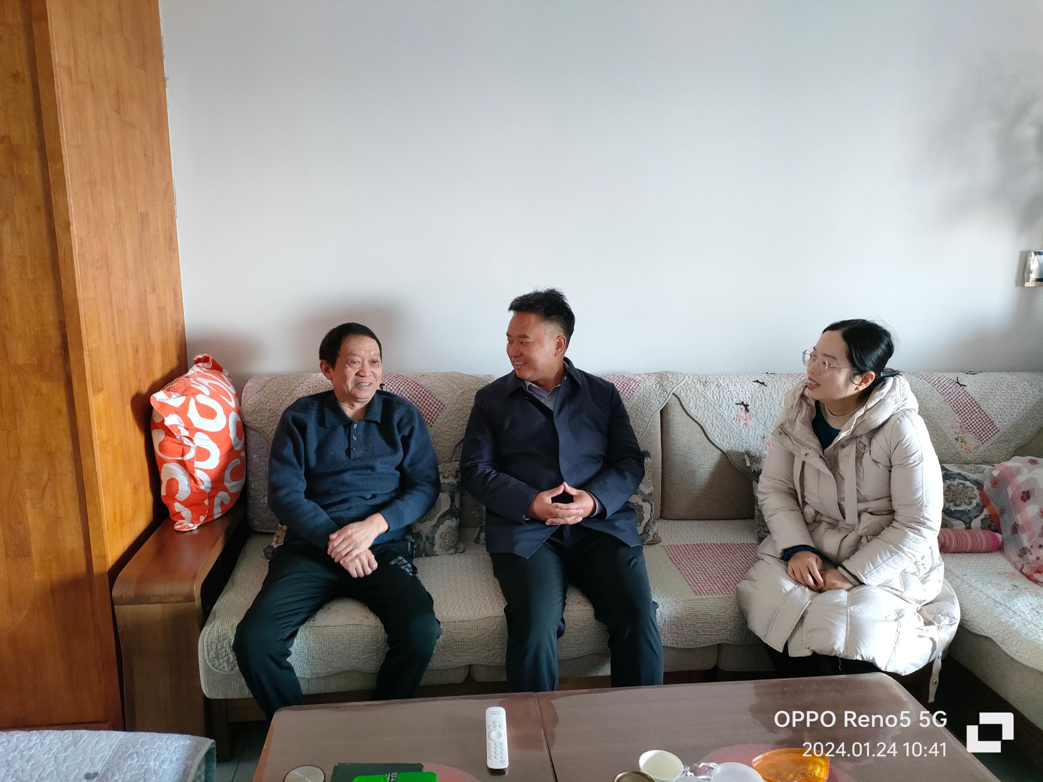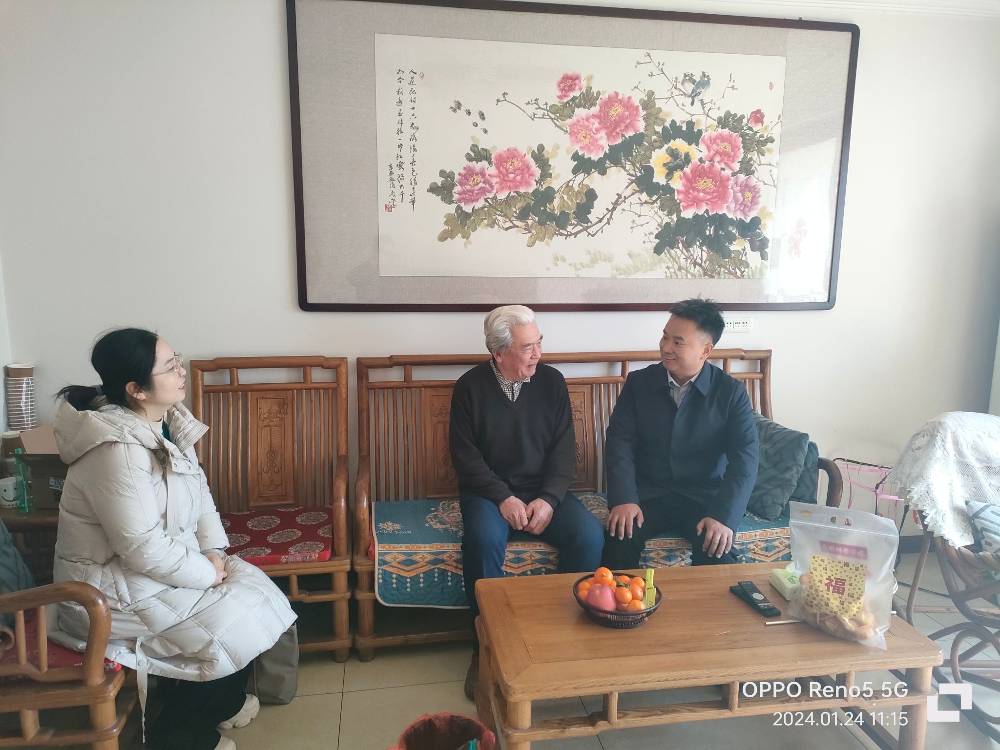1月24日,欧亚国际学院党委书记王振存、党委副书记贺颖、党委办公室主任宿云龙一行走访慰问高忠志、谷跃峰、王敬学等退休老党员老干部,代表学院党委、行政和工会为老同志们送去新春祝福。