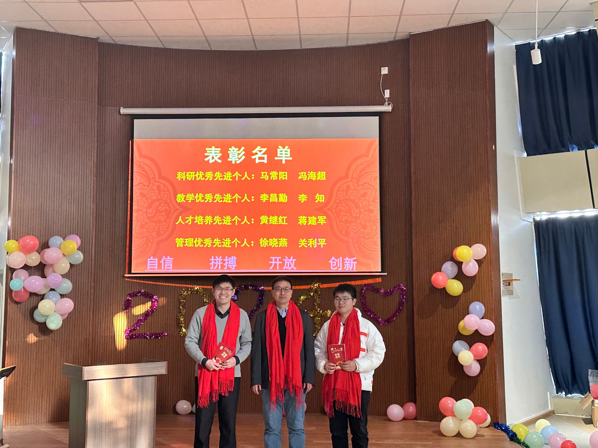 学院党委副书记曹玉辉宣读了学院2023年表彰名单。王学路、王磊、王道杰分别为马常阳、冯海超、李昌勤、李知、黄继红、蒋建军、徐晓燕、关利平等8位教师颁发了荣誉证书。王磊表示,每位教职工生都是学院发展的见证者、参与者和推动者,学院取得的各项成绩都离不开每位教职工生的努力,希望每位教职工生在新的一年里取得新的进展。