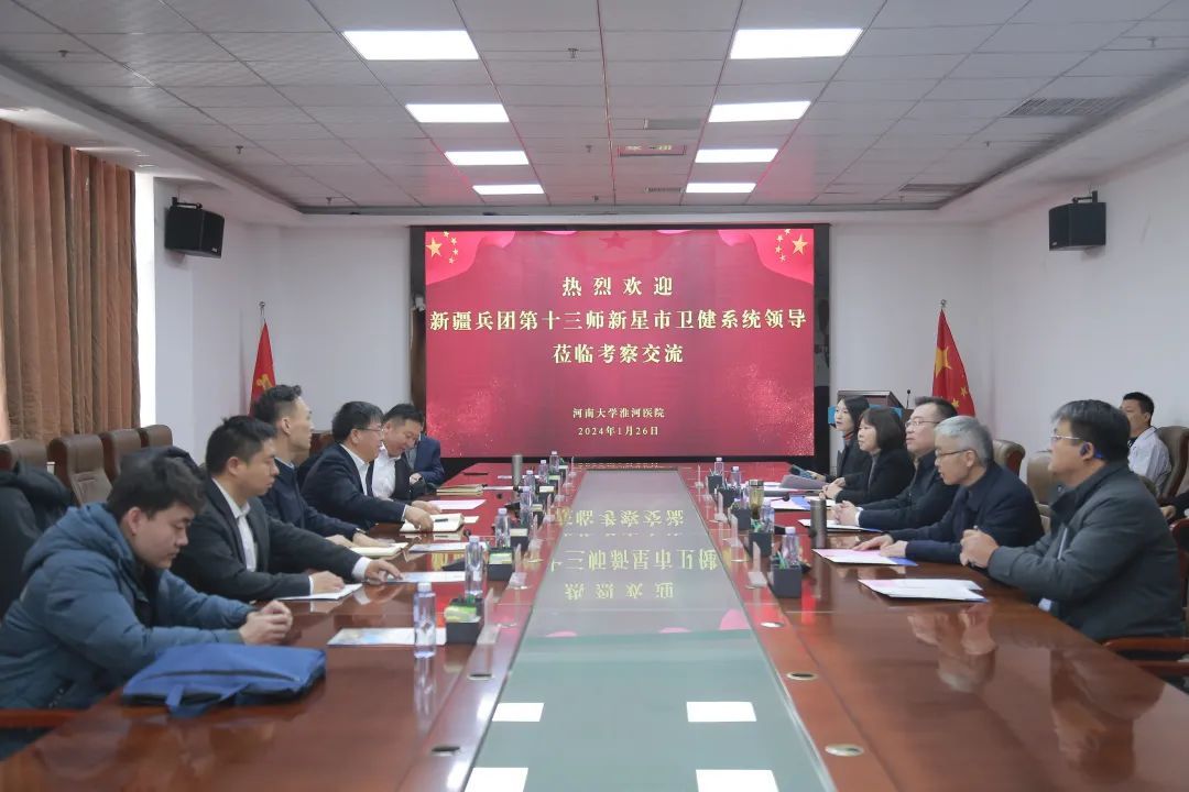 1月26日上午,新疆兵团第十三师新星市党委常委、副师长、第十一批河南省援疆工作指挥部党委副书记王永峰一行7人到淮河医院考察交流,医院党委书记张东强及在院领导班子成员、援疆专家代表及各职能科室负责人参加座谈会并陪同考察交流。会议由党委书记张东强主持。