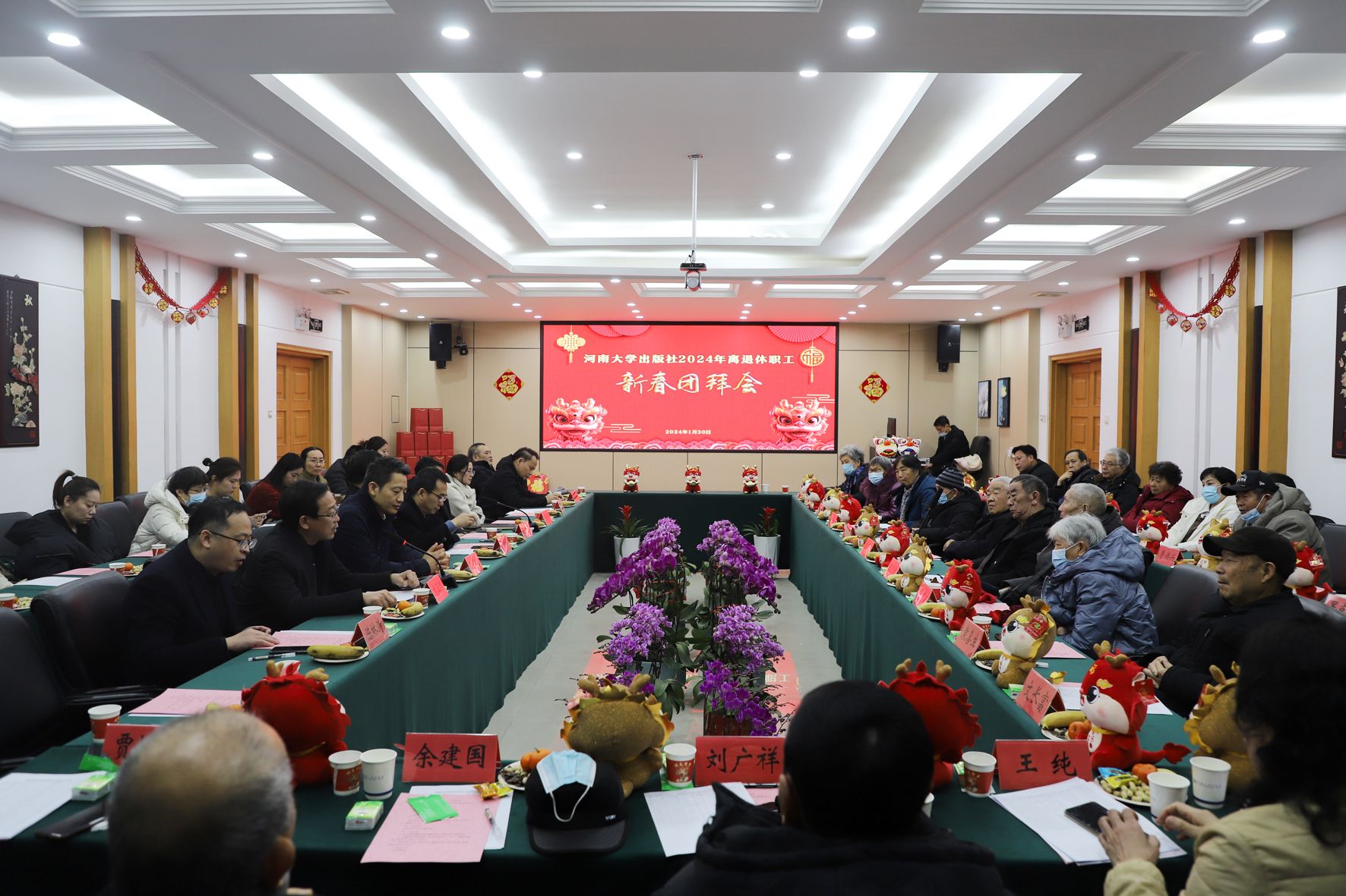 社长谢清溪向大家详细介绍了出版社在过去的一年里取得成绩和今后的发展愿景。一是积极应对复杂多变的经济形势和市场环境,创新开展干部人事管理、绩效目标考核等机制体制改革,激发企业活力,实现全年主营业务收入稳中有进,保证了国有资产的保值增值;二是充分挖掘河南大学特色优势,先后三十余种图书荣获国家和省里各种奖项,国家出版基金项目获批数量在我省居于首位,社会效益得到充分彰显;三是根植于大学母体,服务学校“双一流”建设,先后开展了成立出版专家策划委员会、捐赠2800万用于学校场馆建设、设立1000万学术出版基金用于资助学科优秀出版物、承担16项我校教师的河南省“十四五”本科规划教材、开展各学科走访提供精准服务一系列行之有效的举措;四是实施“走出去”战略,加强国际传播能力建设,开发出版有影响力的“中华源·河南故事”系列国际主题丛书,充分展现河南大学国际形象;五是在服务社会中彰显河大情怀,先后向河南科技学院、新疆生产建设兵团、嵩县、河大附属学校等捐赠系列图书三十余种、二万余册。他表示,如今出版社高质量发展不断取得的新成效,离不开广大离退休干部职工打下的坚实基础和长期以来的坚定支持,老同志们为出版事业作出的重要贡献,是出版社的宝贵财富。今后将认真落实学校相关退休政策,用心用情、做实做优退休职工服务保障工作,让老领导老同志生活更舒心、更安心、更顺心。希望老同志们继续用丰富的智慧经验和人生阅历,对出版社的发展改革建言献策、指导帮助,推动出版社各项事业更上层楼。