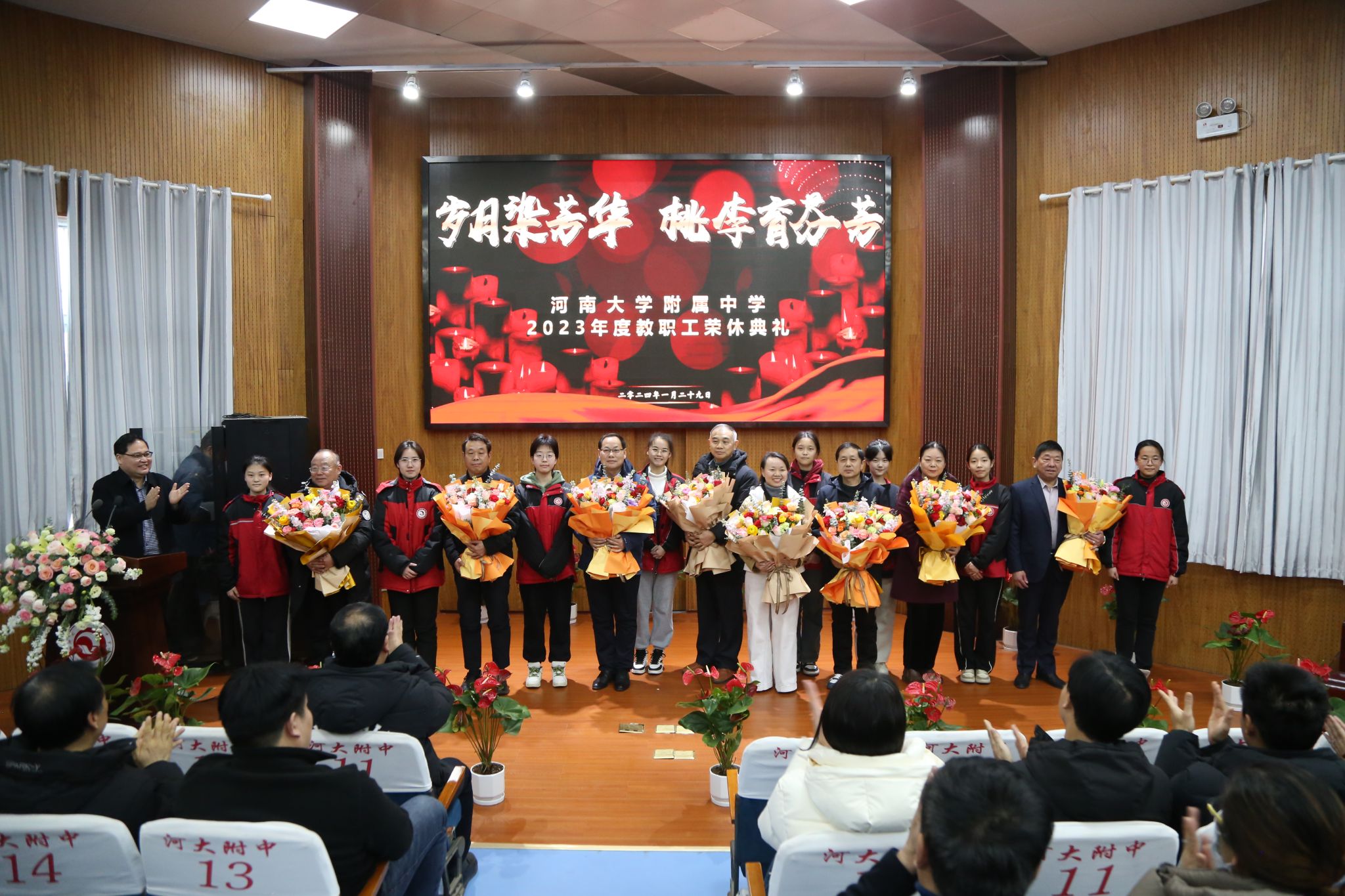 1月29日,河南大学附属中学2023年度教职工荣休典礼在学校二楼报告厅举行。张殿卿、李玉洪、徐砚田、李振标、王爱红、冯长顺、李娜、贾学民等8位荣休教师,全体校领导、教师代表、学生代表等共同参加了此次典礼。典礼由附属中学党委书记高冬东主持。