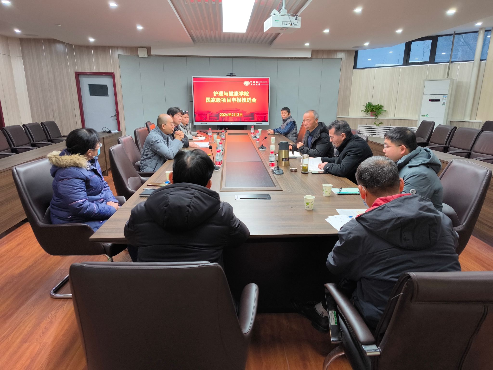 为促进学院国家级课题申报,以高水平科研支撑高质量人才培养,2月3日下午,护理与健康学院采用线上线下相结合的方式,召开2024年国家级课题申报推进会。护理与健康学院领导班子全体成员、各科室负责人、55岁以下高级职称人员以及招有硕士的导师参加会议。会议由副院长陈超然主持。