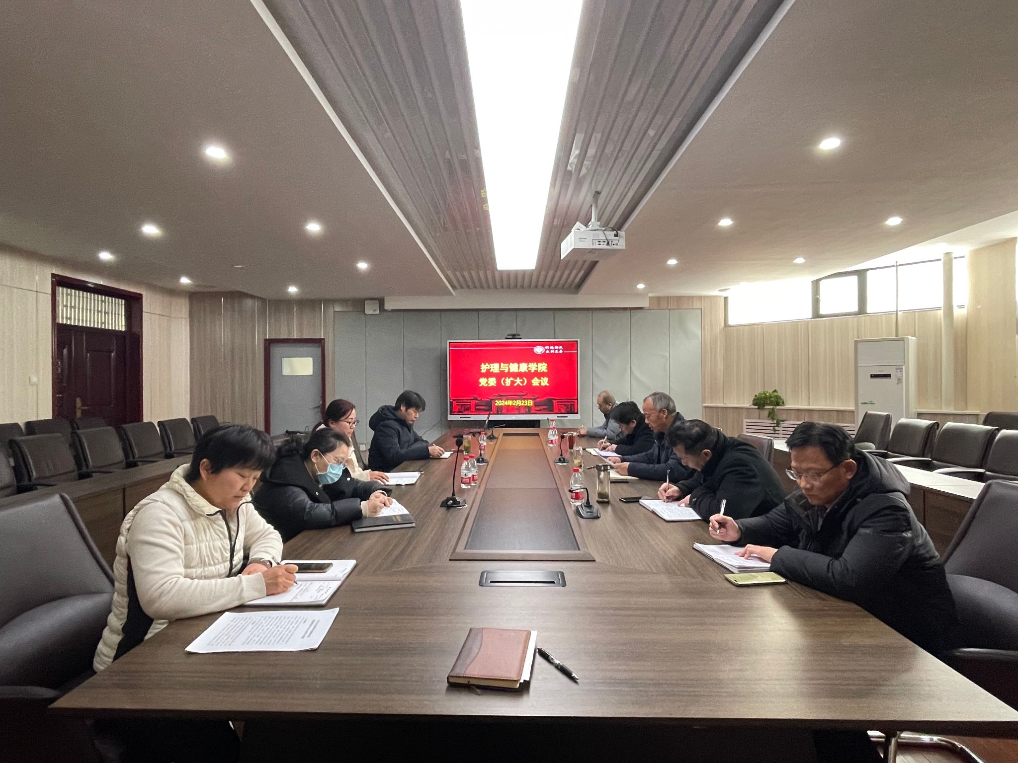 会议对《2024年度护理与健康学院党委理论学习中心组学习安排》进行了充分讨论,并就学院“河南省脑卒中智慧康养工程研究中心”机构建设、2024年党员发展等工作进行了详细安排。