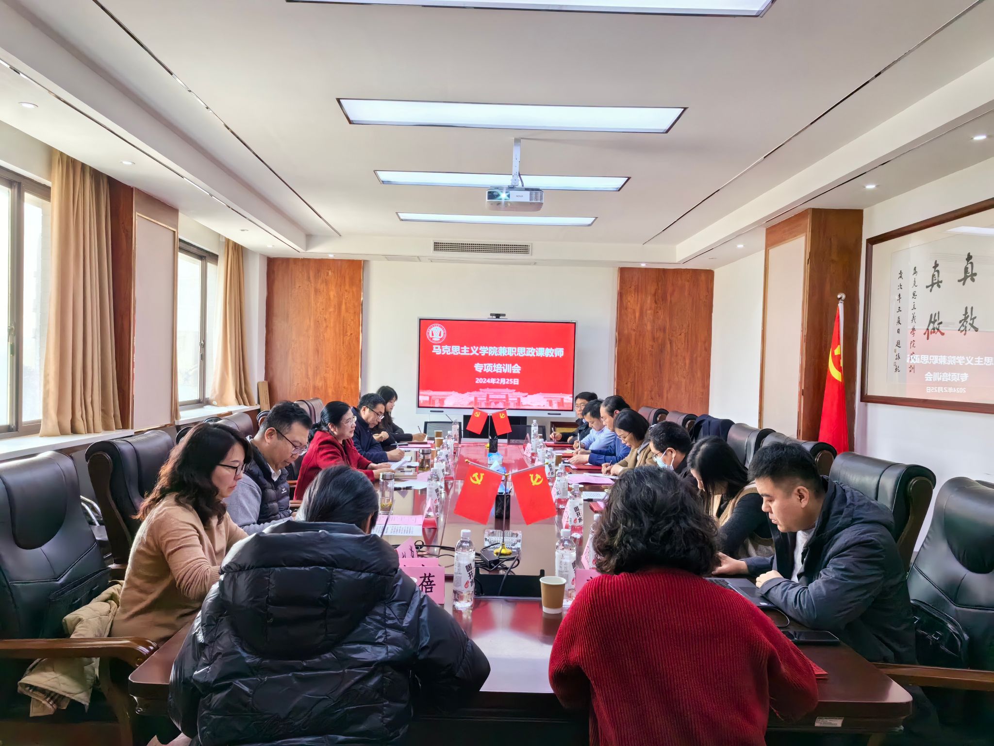 为进一步加强学院兼职思政课教师队伍建设,全面提升兼职思政课教师能力素养,推动思政教育高质量发展。2月25日上午,马克思主义学院在明伦校区科技馆三楼会议室召开兼职思政课教师专项培训会。院党委书记彭绪琴、执行院长任东景、副院长刘嘉尧以及马克思主义学院兼职思政课教师参加会议。会议由刘嘉尧主持。