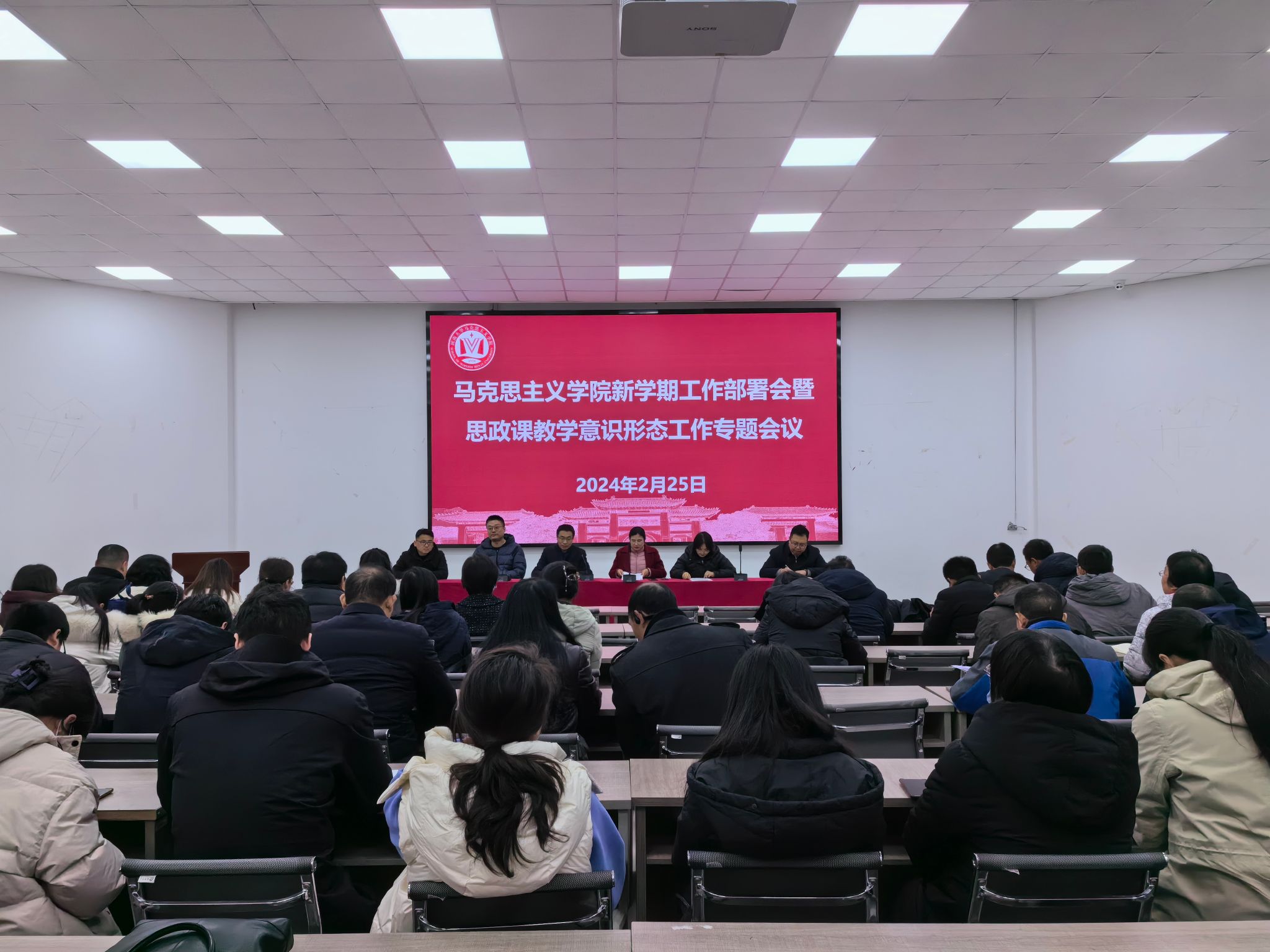 为确保新学期各项工作有序开展,进一步增强思政课教师意识形态风险防控意识,2月25日下午,马克思主义学院在明伦校区科技馆一楼报告厅召开新学期工作部署会暨思政课教学意识形态工作专题会议。学院全体教职工参加会议,会议由学院执行院长任东景主持。