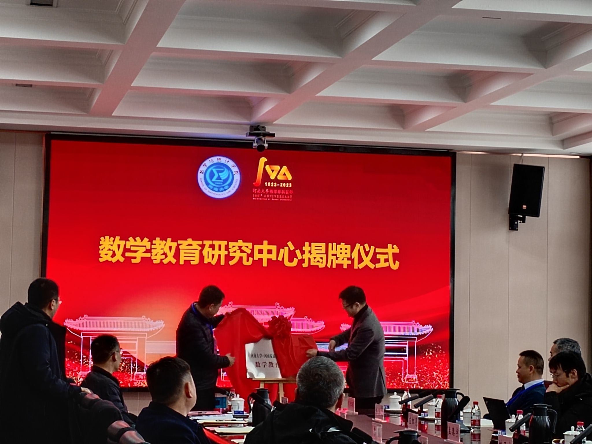 在研讨会开幕式上,河南大学科学技术研究院院长胡彬彬,河南绽放教育集团总经理李暮共同为数学教育研究中心揭牌。