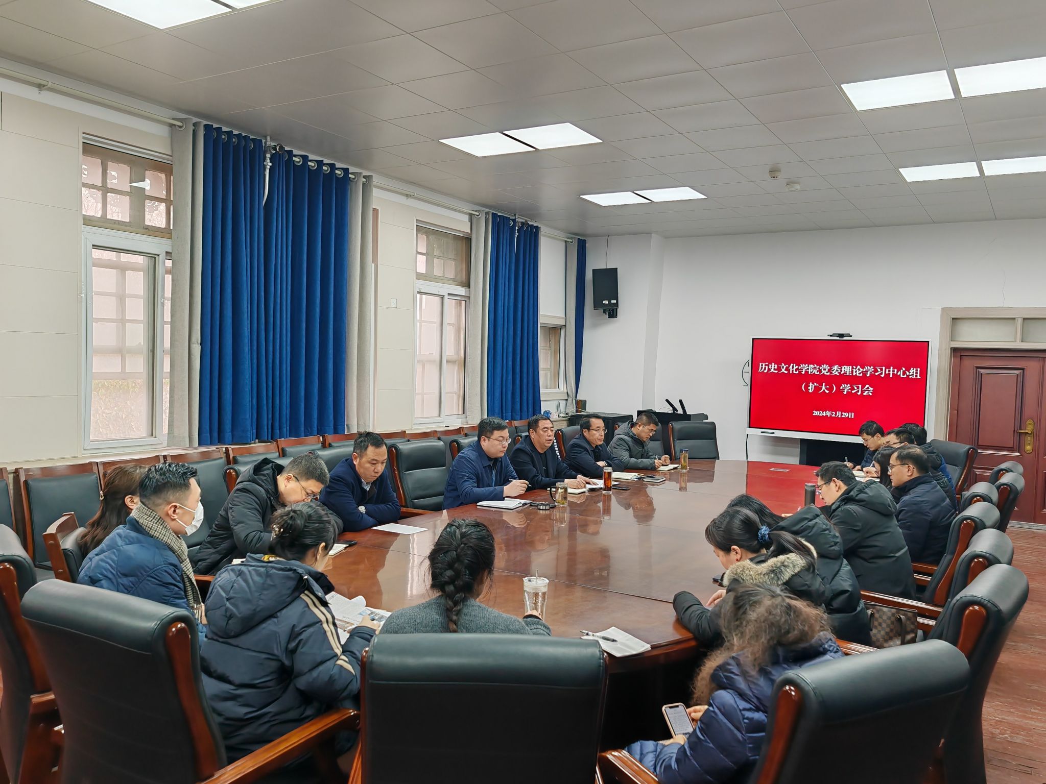 2月29日上午,历史文化学院在三楼会议室召开党委理论学习中心组(扩大)学习会,全体班子成员,系(教研室)党支部书记、主任、副主任,各科室主任参加学习。