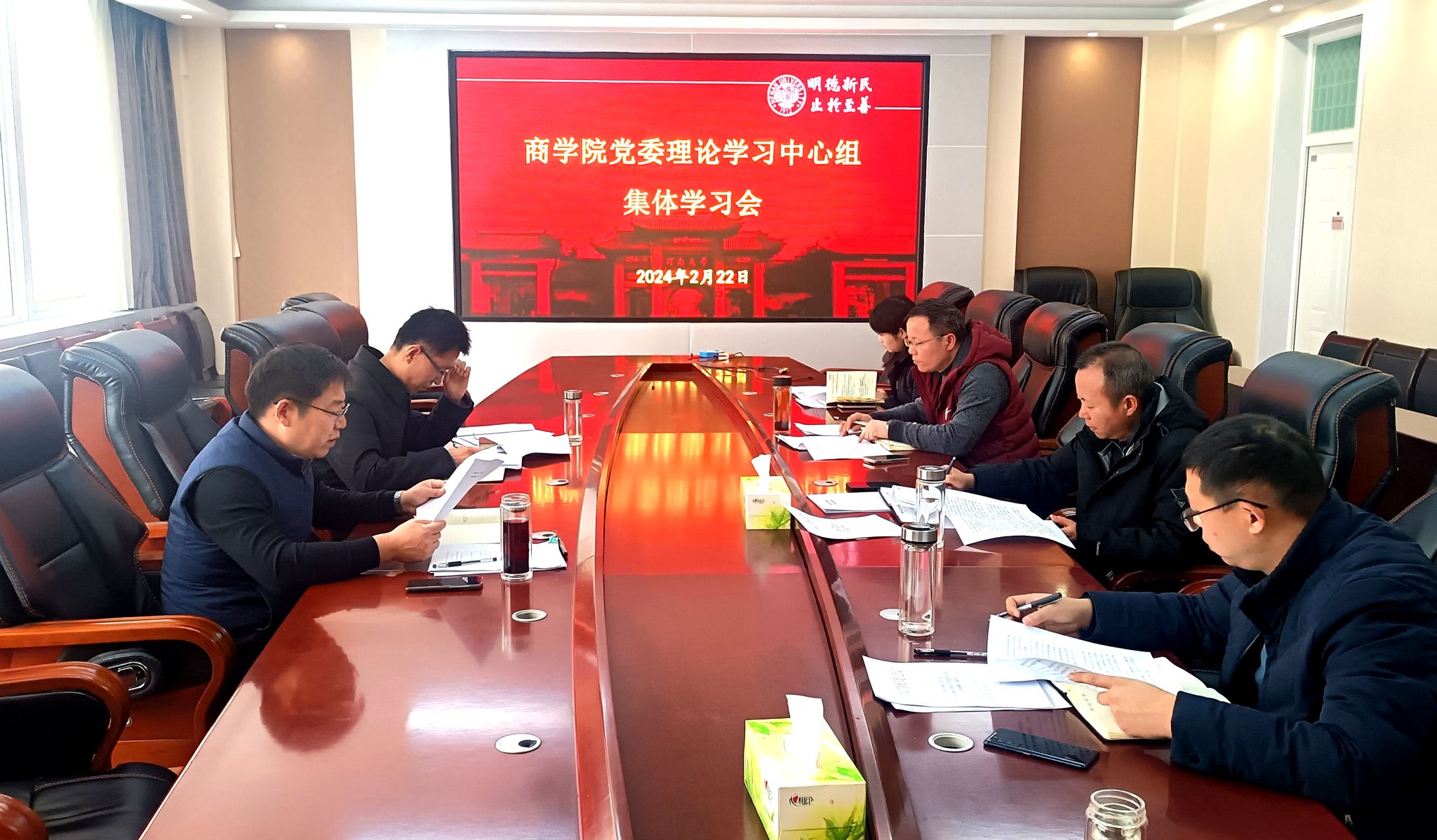 2月22日上午,商学院召开党委理论学习中心组集体学习会,学院全体党委委员、领导班子成员参加会议。会议由学院党委书记左辞波主持。会上,左辞波领学习近平总书记在中共中央政治局第十一次集体学习时的重要讲话精神,传达楼阳生书记在全省学习贯彻习近平新时代中国特色社会主义思想主题教育总结会议上的讲话精神等内容;党委副书记、执行院长席龙胜领学校长张锁江院士在2月5日全校领导干部会议上的讲话精神。与会人员还围绕校党委书记季波、校长张锁江院士在学校党委理论学习中心组2024年第一次集体学习会上的讲话内容进行了学习研讨。