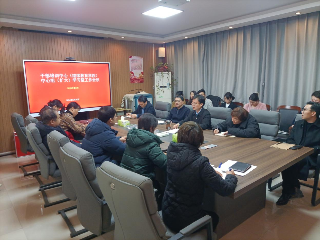 2月29日,干部培训中心(继续教育学院)在学院一楼会议室召开党总支理论学习中心组(扩大)会议暨2024年工作会议,学院领导班子成员和全体教职工参加会议,会议由党总支书记韦胜军主持。