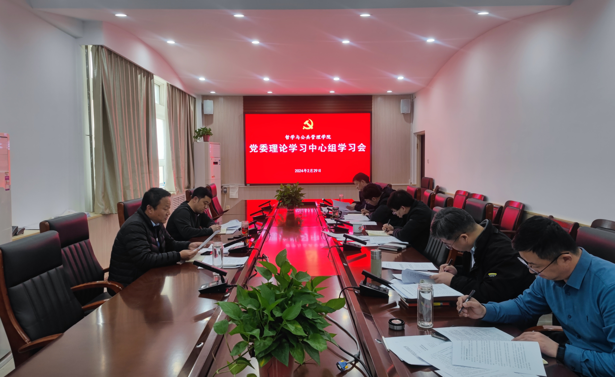 2月29日下午,哲学与公共管理学院于第三会议室召开党委理论学习中心组学习会,学院全体领导班子参加会议。会议由院党委书记党鸿军主持。