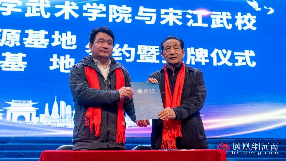 洪浩表示,武术学院人才辈出,学生在国内外武术比赛中屡创佳绩,仅去年一年,学院师生共获得9个世界冠军、1个亚运会冠军、136个全国冠军。希望在未来河南大学武术学院与宋江武术学校在人才输送、武术人才培养等方面加强合作,共同为武术事业的发展作出贡献。