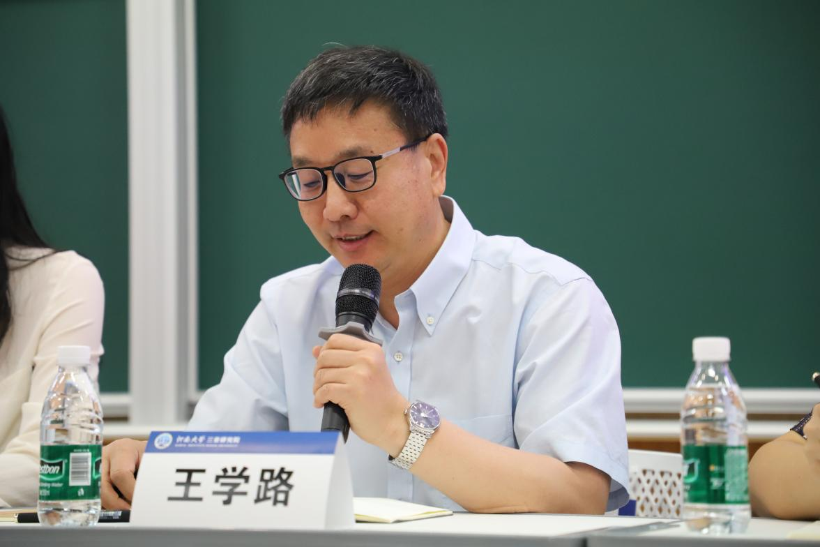 王学路教授致辞。他代表三亚研究院欢迎59名新同学来到崖州湾、来到三亚研究院开启新的人生之旅。他首先介绍了三亚研究院的建设发展历程及发展目标。他通过“一组数字”阐述了三亚研究院成立两年多来的艰难开拓、奋力创业的历程。他表示,河南大学集中全校优质办学资源,切实把学校发展放在国家事业发展大局中,主动对接国家粮食安全战略,创办三亚研究院。他对全体新生提出了殷切期望,科研要以服务未来农业科技为目标,学有所成、研有所获。崖州湾科技城是未来农业科技发展的核心区,希望大家沉下身心科研,不负这片热土;希望广大学子继续彰显河大风范,展现河大风采,勤于学习、敏于求知,不负学校的期望和重托!