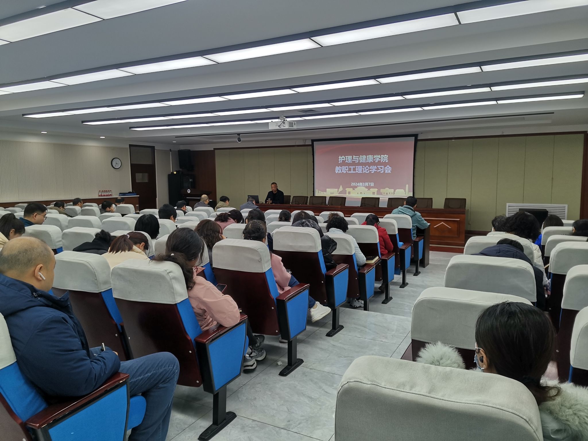 新学期伊始,为进一步加强学院全体教职工政治素养,开篇布局谋发展,凝心聚力谱新篇。3月7日下午,护理与健康学院在二楼报告厅召开教职工理论学习会,学院全体教职工参加。会议由副院长杜保明主持。