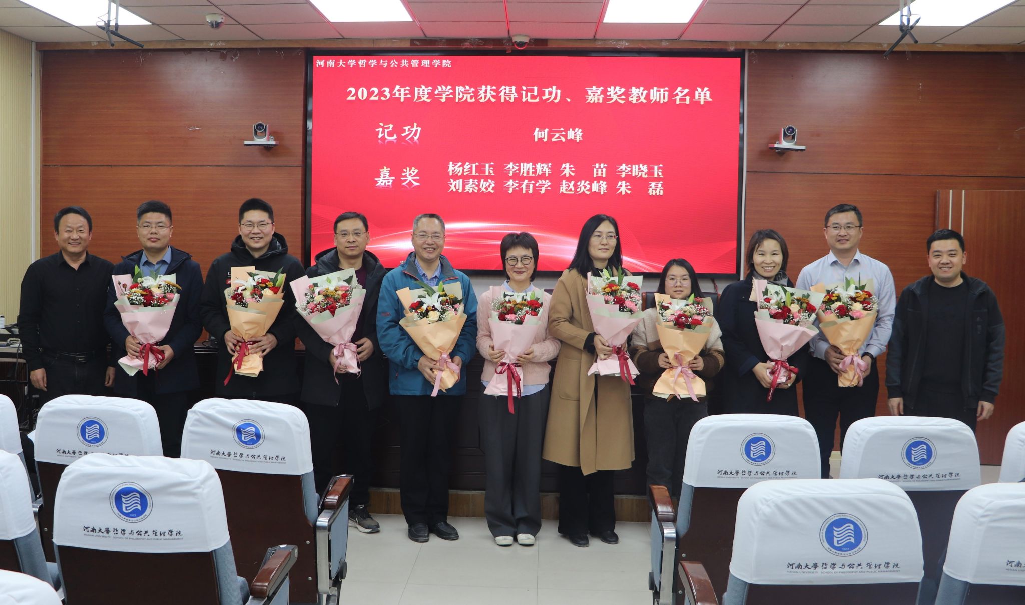 红烛照耀育桃李,一载耕耘一载歌。学院对2023年度获得记功、嘉奖的教师进行表彰。在热烈的掌声中,学院领导为每一位获表彰的教师献花,对他们作出的贡献予以高度赞扬和肯定,进一步激励全体教职工干事创业的热情,为提升学院的教学质量和科研水平贡献力量。