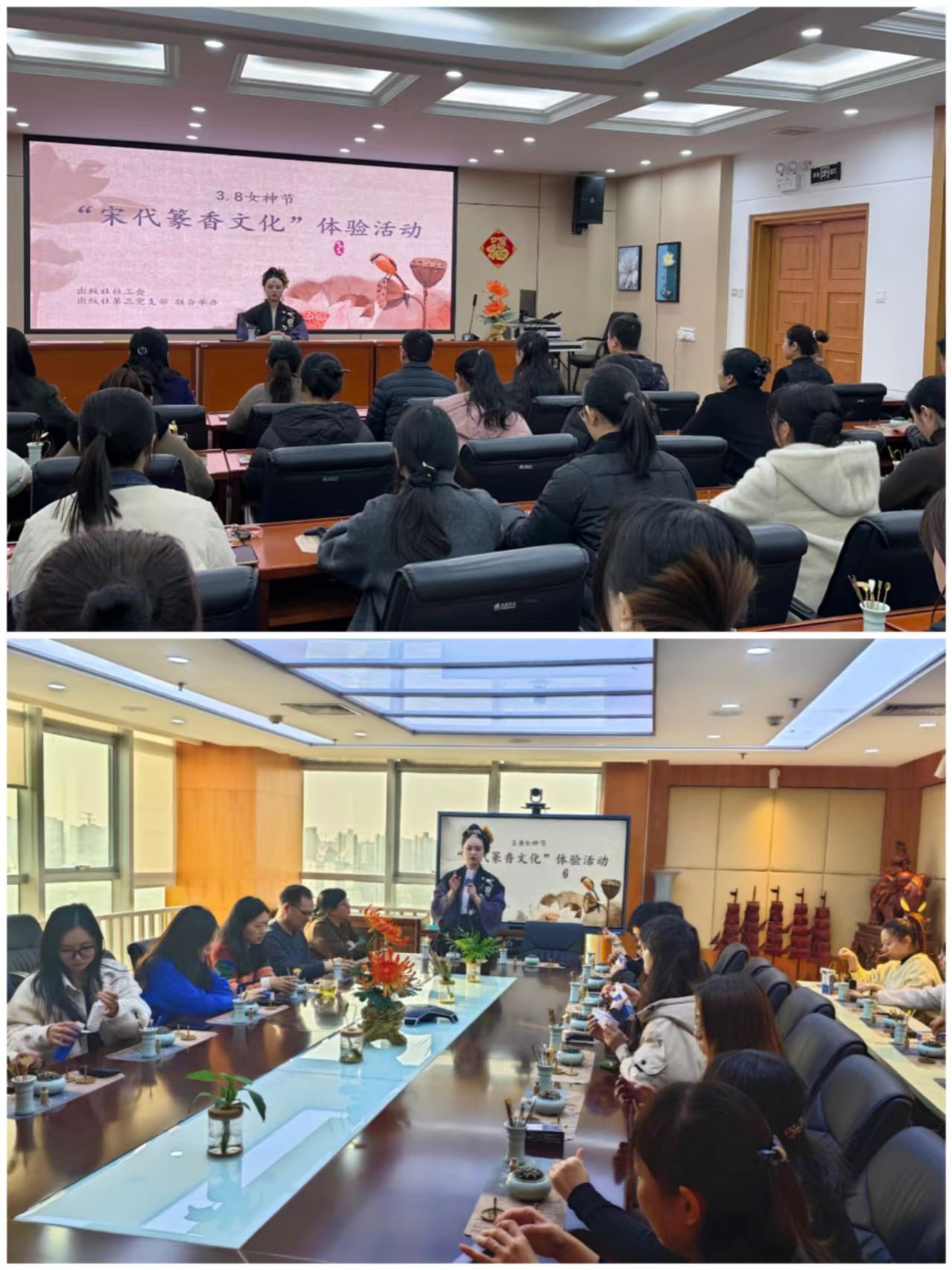 阳春三月,万象更新。在“三八”国际妇女节到来之际,为丰富出版社女职工的精神文化生活,传承中华优秀传统文化,营造出版社和谐、文明的文化氛围,第三党支部联合社工会组织开展了主题为“宋代篆香文化”的沉浸式体验研学活动。