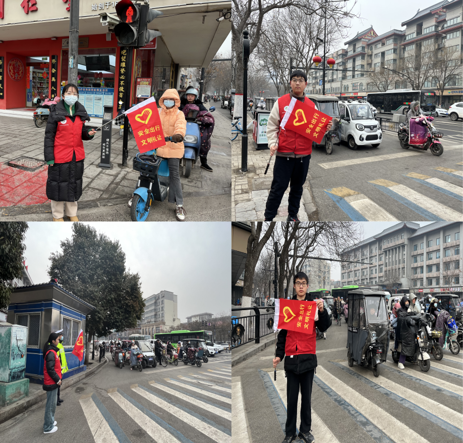 能源科学与技术学院师生志愿者在开封市顺河回族区东司门岗开展文明交通指挥志愿服务活动。“你好,请在停止线内等候”“骑电动自行车前请记住佩戴好头盔再出行。”活动现场,师生志愿者们化身文明交通劝导员,手持“安全出行文明礼让”小红旗,引导行人、非机动车按照交通信号过马路,对行人逆向行驶、不礼让行人、骑摩托车不带头盔等不文明交通行为进行安全劝导,同时普及头盔的重要性,倡导过往群众“走文明路、行文明车、做文明人”,进一步传承弘扬雷锋精神,增强广大市民文明出行意识。